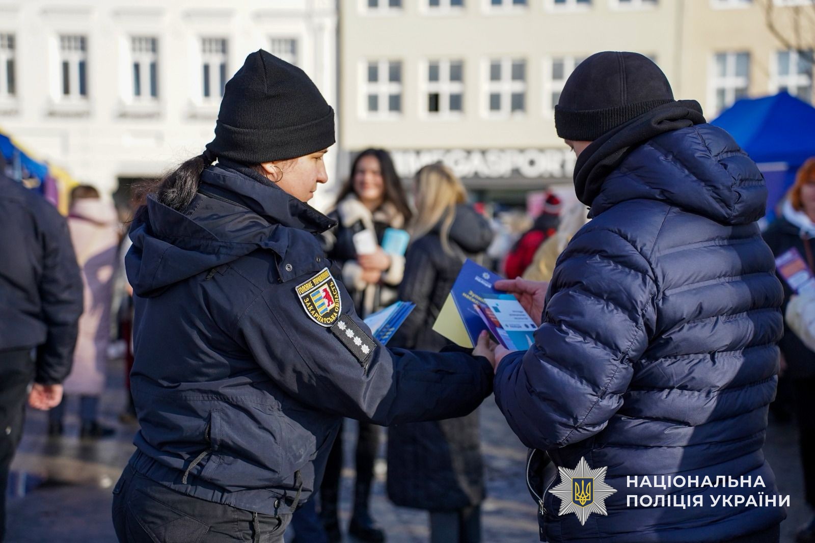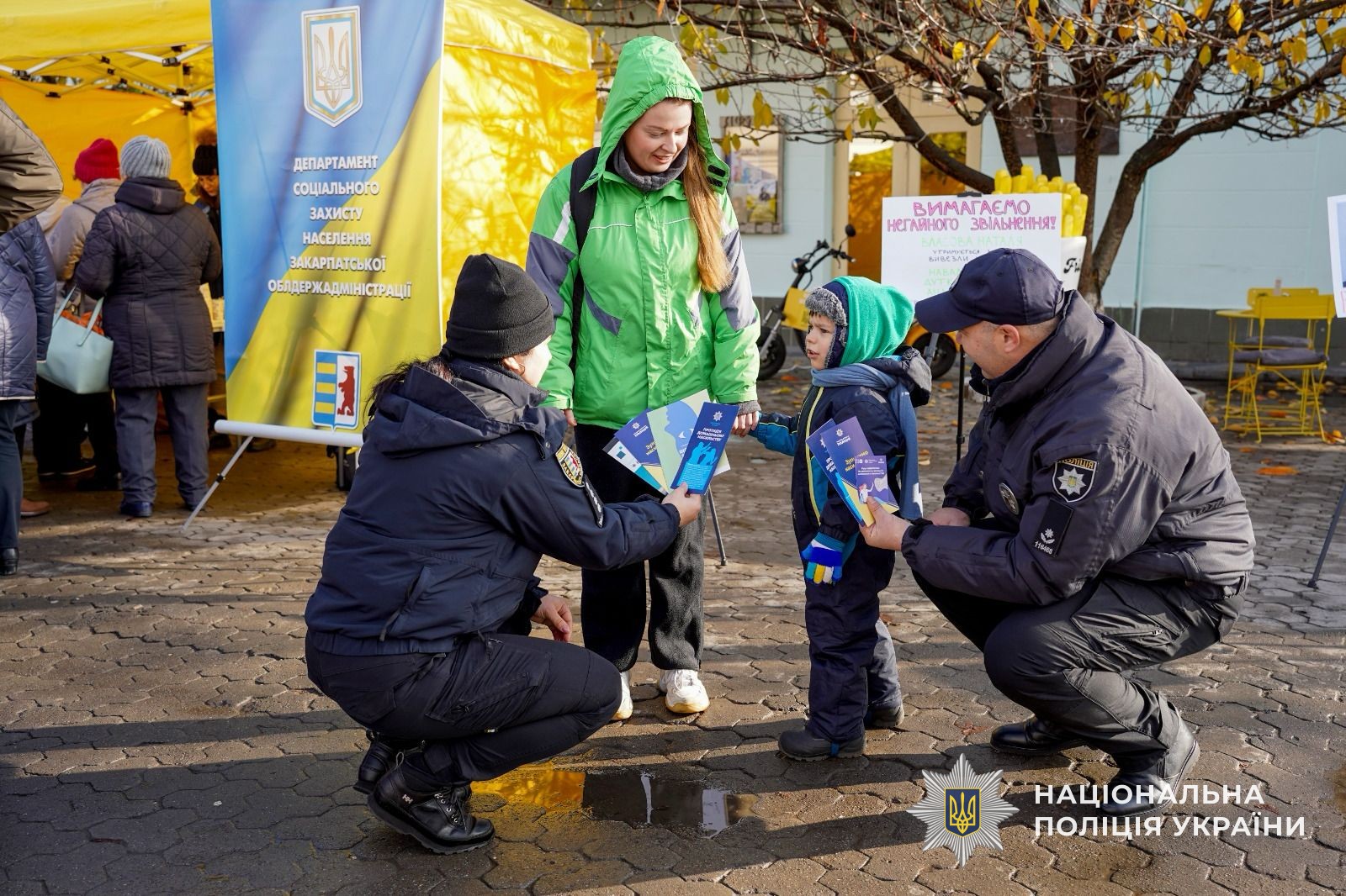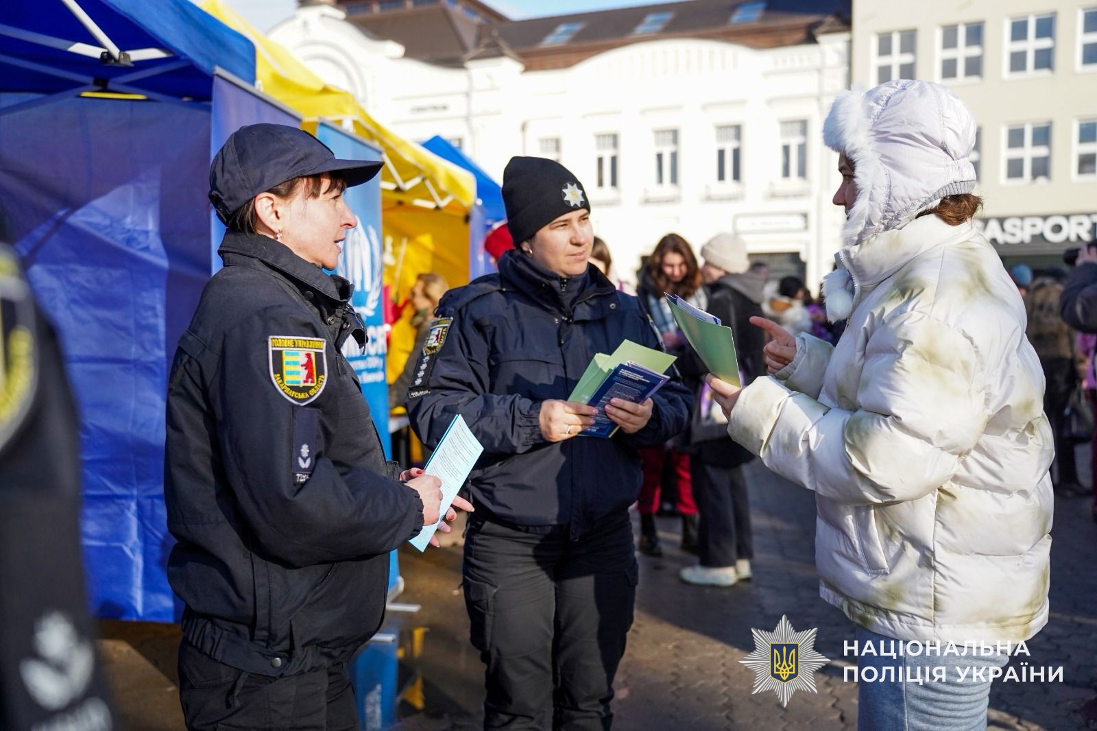 В межах Всеукраїнської акції «16 днів проти насильства» співробітники Управління превентивної діяльності поліції Закарпаття в обласному центрі долучилися до вуличного заходу «Заради життя без насильства». Правоохоронці інформували громадян краю щодо важливості повідомлення про факти насильства та як вберегтись від нього