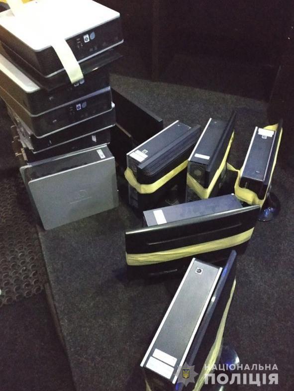 Під час слідчих дій правоохоронці вилучили 25 системних блоків, 24 монітори, 5 wi-fi-роутерів, 5 телевізорів, 5 комутаторів, ігрові пластикові картки, які використовувались для ведення азартних ігор через мережу Інтернет. Також вилучено пристрої для зчитування банківських карток, для видачі чеків, мікшери, робочі записи. Все вилучене направлено на експертизу.