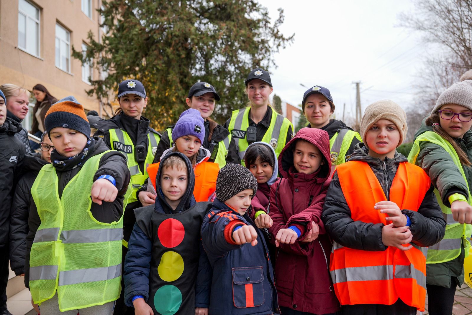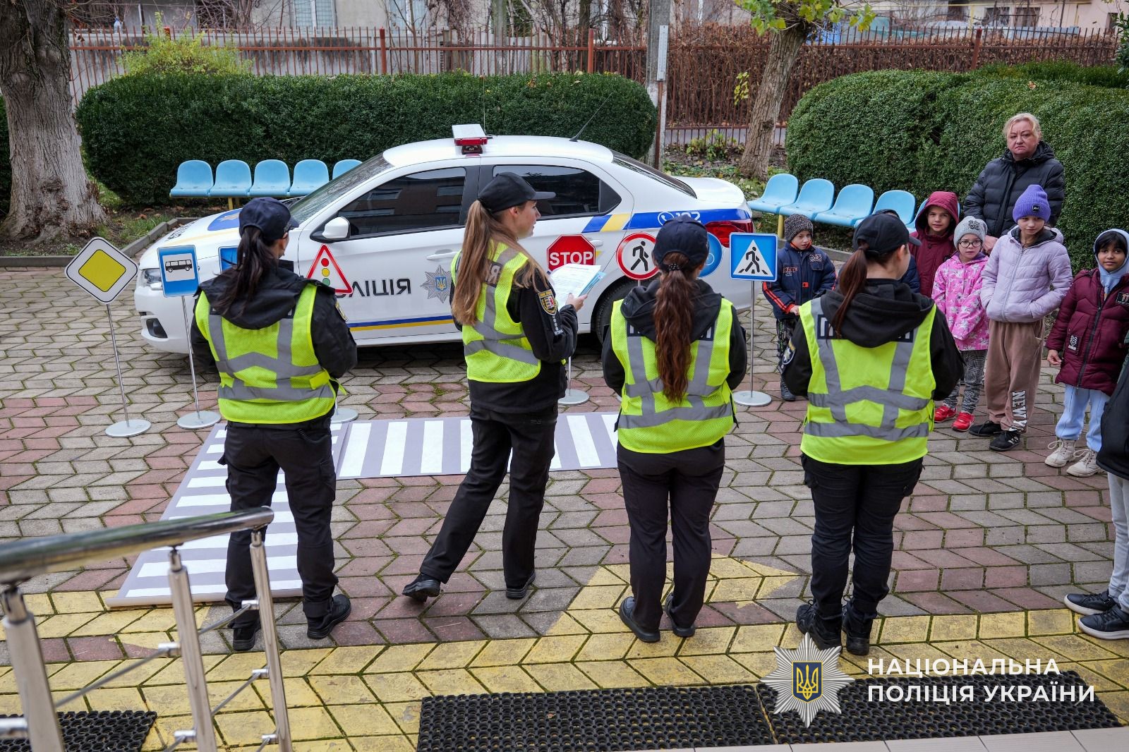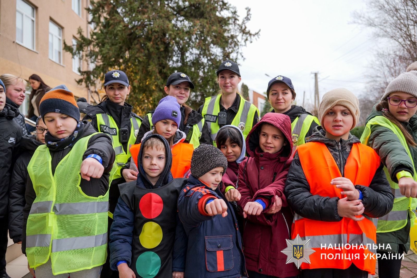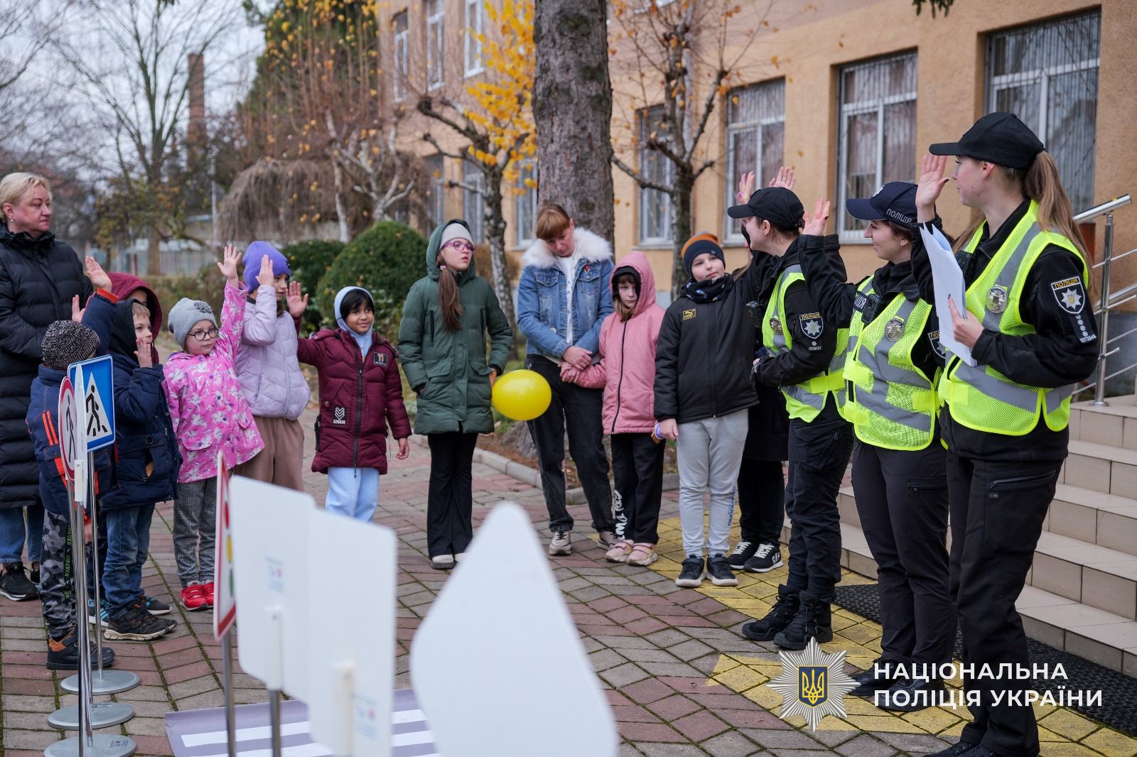 Для найменших – учнів 2-4 класів – поліцейські провели пізнавальну програму «Червоне–зелене світло» та подарували тематичні розмальовки. Разом з дітками вони створювали імпровізовані пішохідні переходи, дорожні знаки та картонні елементи, з яких згодом конструювали «світлофор».