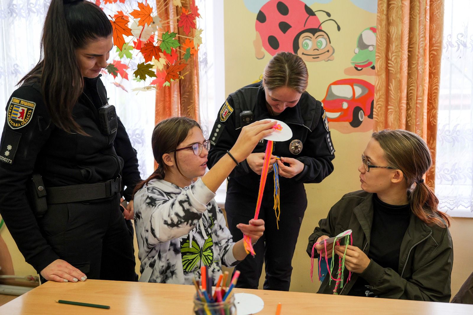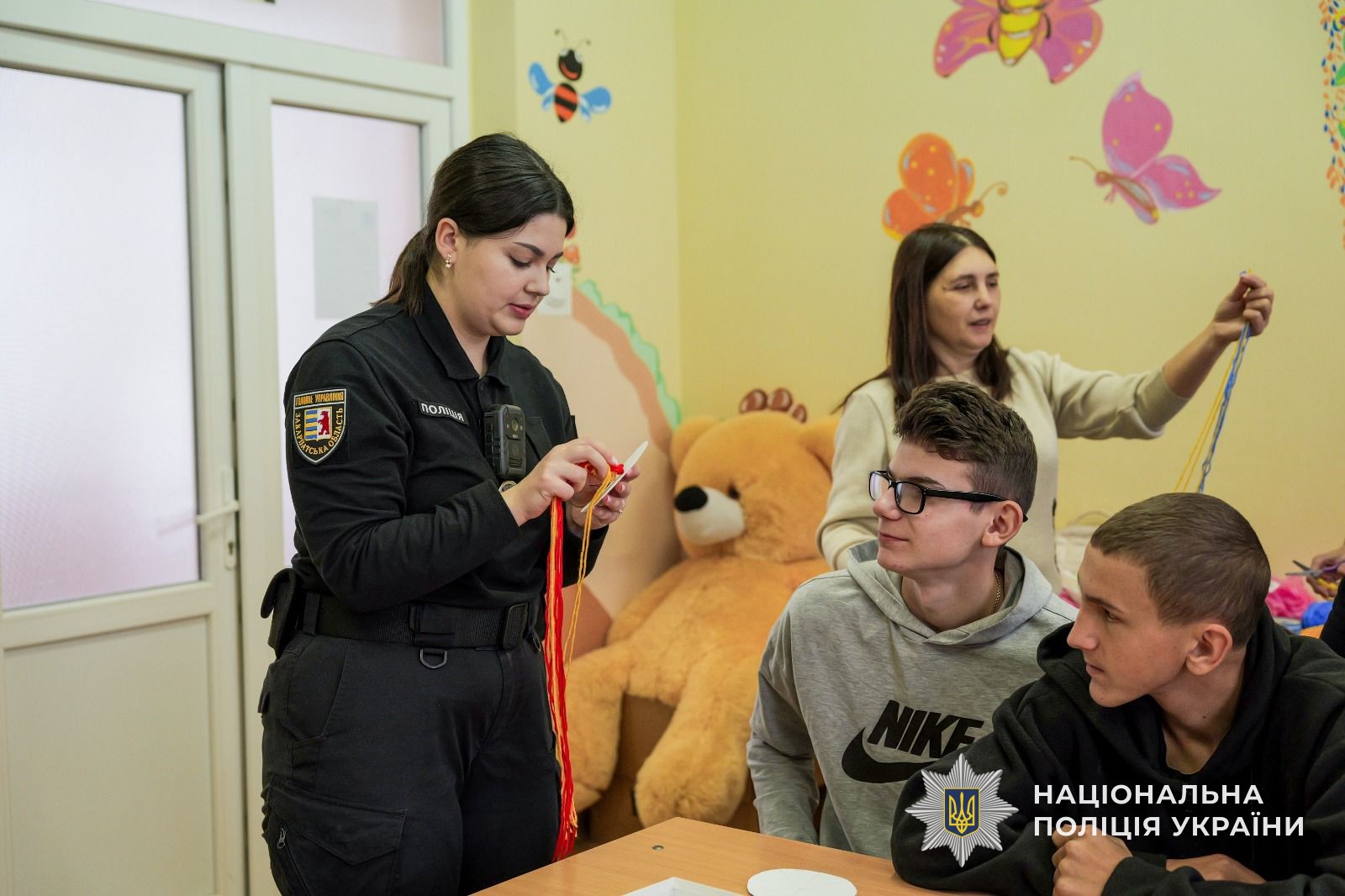 Зі старшокласниками поліцейські говорили про безпечну поведінку як у шкільному середовищі, так і поза його межами. А на згадку про зустріч діти разом із поліцейськими сплели «браслети безпеки».