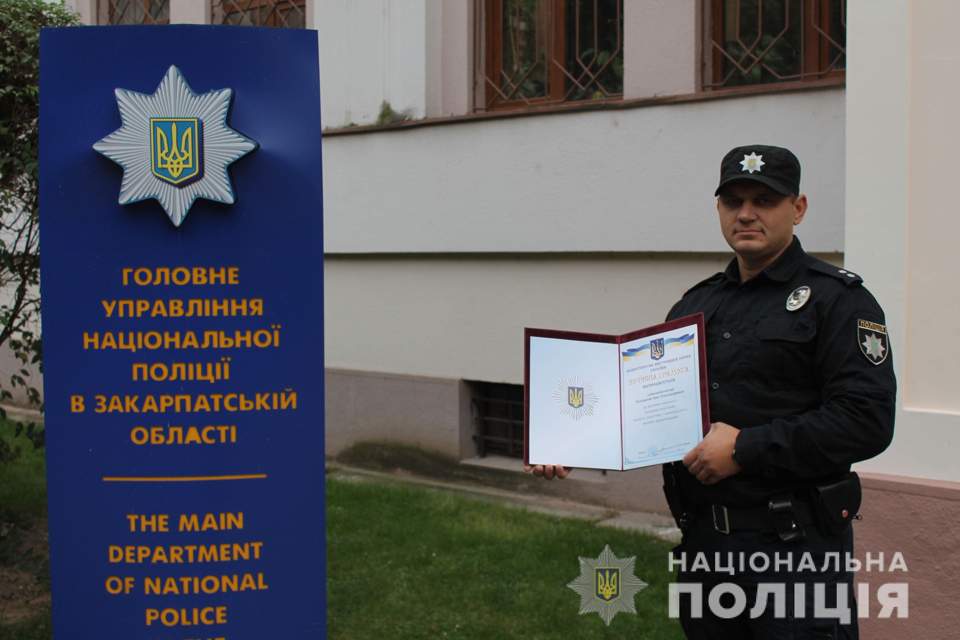 Дільничного офіцера поліції з Ужгорода Івана Белецького нагороджено Грамотою МВС України
