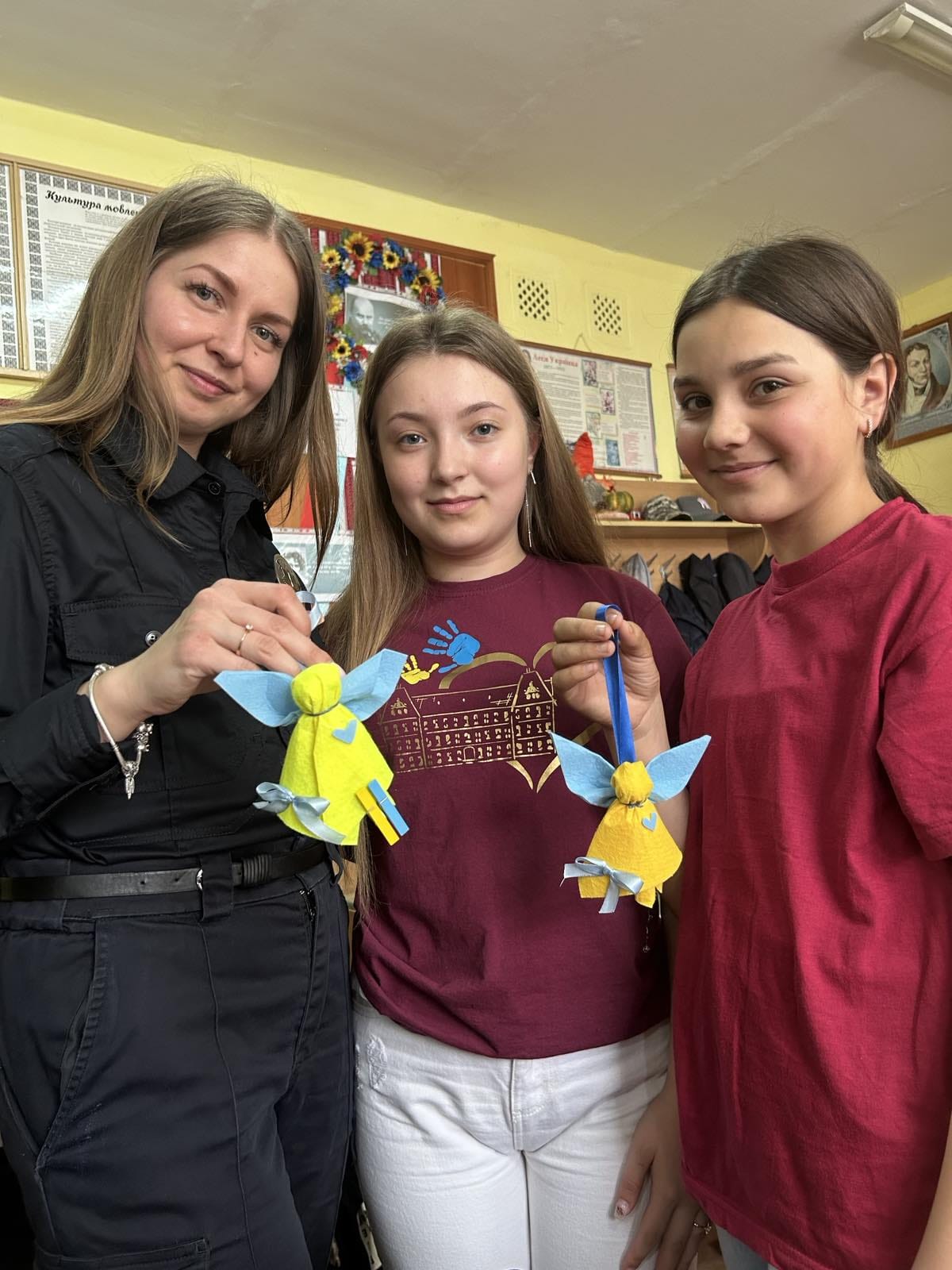 Ювенали поліції Закарпаття разом зі школярами виготовили патріотичні обереги для військовослужбовців ЗСУ. Під час створення мотанок-янголів діти вирішили заховати всередині особливі листи – щирі прохання до янголів захистити кожного воїна. Обереги разом із малюнками та прапорами з побажаннями поліцейські передадуть військом Збройних Сил України