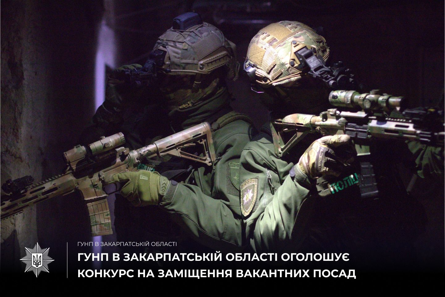 ГУНП в Закарпатській області розпочинає конкурс на службу в поліції на заміщення вакантних посад інспекторів і поліцейських батальйону поліції особливого призначення (стрілецький) ГУНП.Реєстрація онлайн-анкет триватиме з 16.07.2025 до 09.08.2025