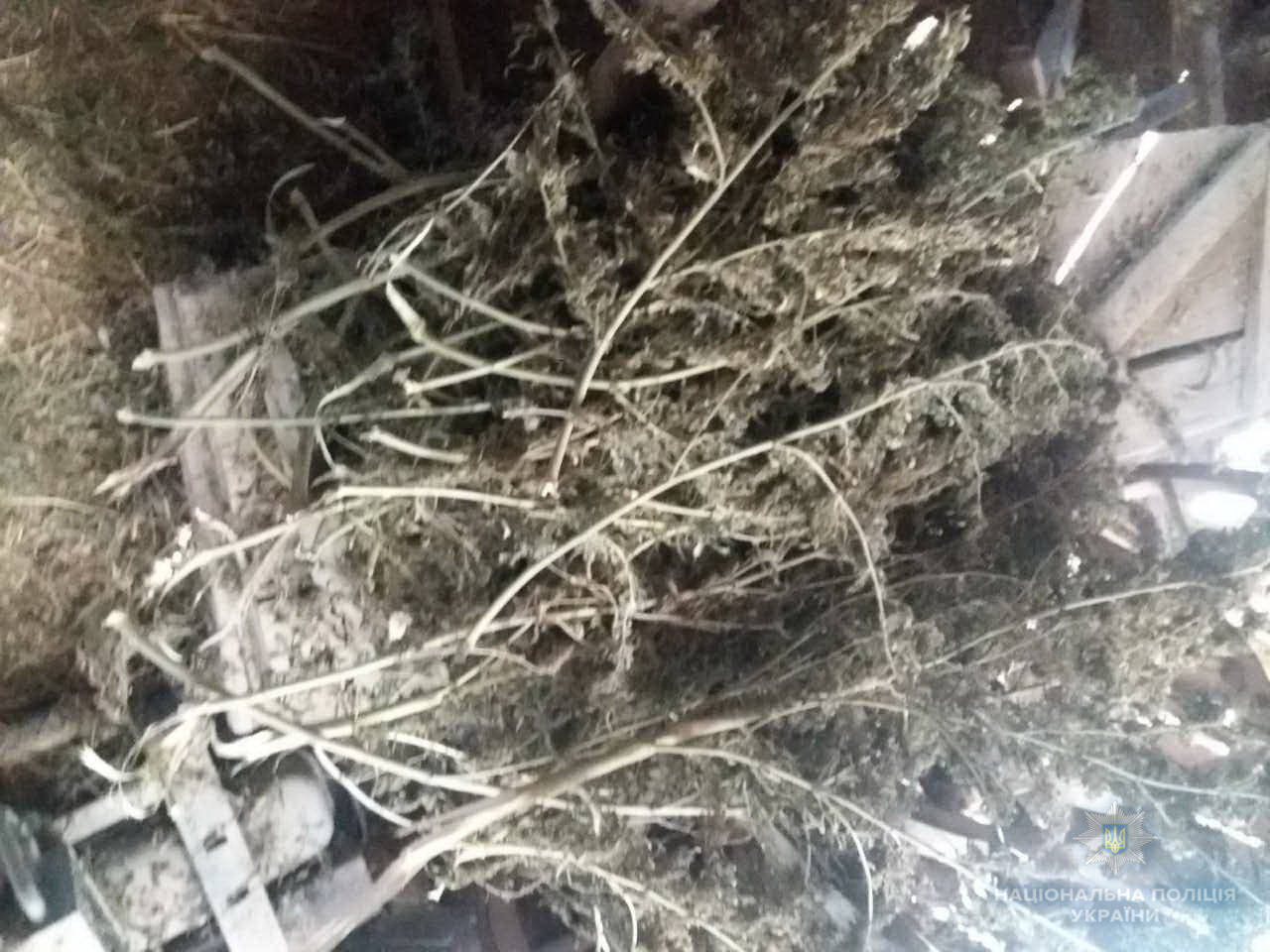 Під час обшуку дільничні виявили та вилучили за місцем проживання пенсіонерки на даху житлового будинку 123 рослини, зовні схожі на коноплю, 3 картонні коробки та 2 поліетиленових пакети, у яких зберігалось більше 4 кг сухої подрібненої речовини рослинного походження. Як розповіла жінка, рослини вона вирощувала у себе вдома і поступово їх висушувала та подрібнювала.
