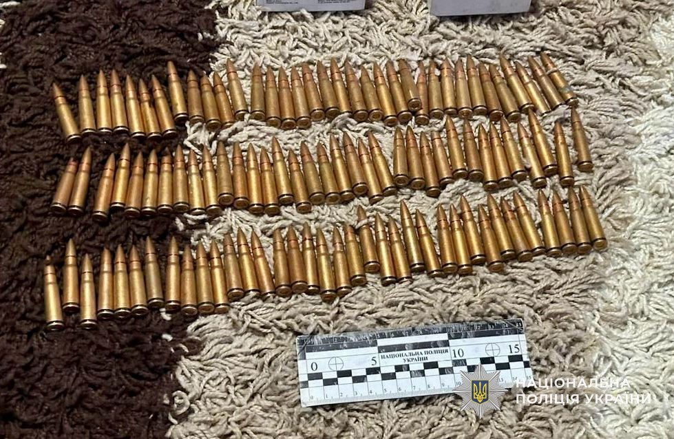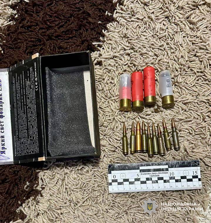 У фігуранта злочину слідчі та оперативники виявили цілий схрон зброї та боєприпасів. Зокрема йдеться про майже 800 набоїв різного калібру, більшість з яких саме до автоматичної зброї; ємність з порохом; різні частини до вогнепальної зброї та власне саму зброю.
