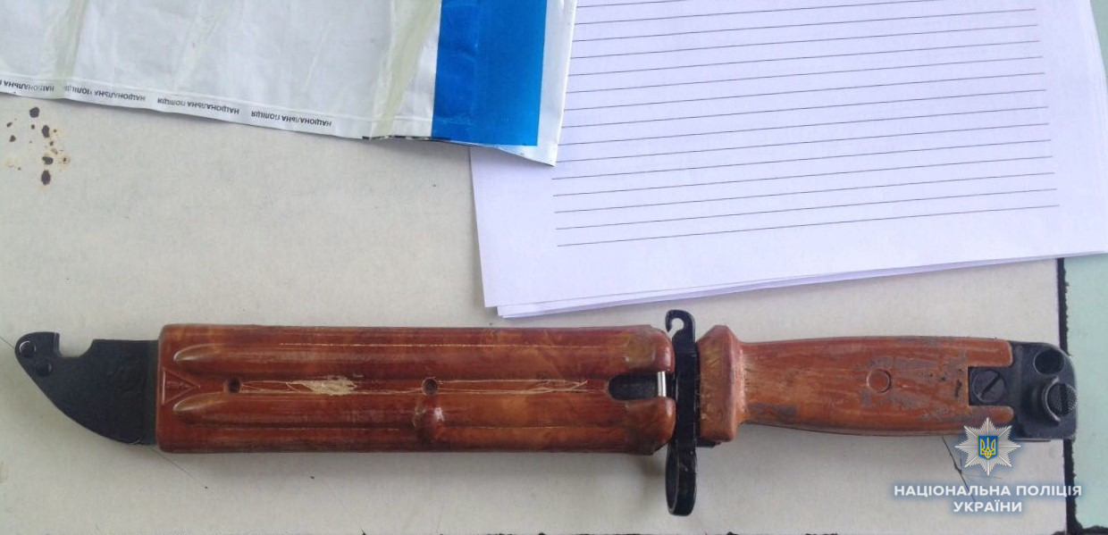 Під час огляду речей чоловіка поліцейські знайшли та вилучили у нього предмет, схожий на штик-ніж. Зі слів 52-річного мешканця сусідного села Кальник, ніж він знайшов та надумав продати.
