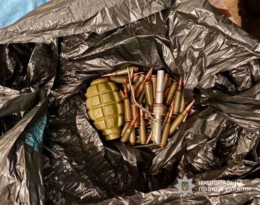Загалом з незаконного обігу поліцейські вилучили понад сотню набоїв до автоматичної зброї та три гранати (дві РГД-5, одну Ф-1) із запалами до них.