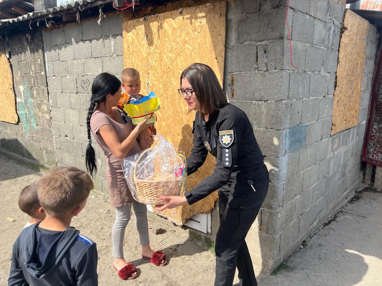 Ювенальні поліцейські Закарпаття разом з місцевими волонтерами напередодні свята Великодня відвідали родини з дітками, які опинилися у складних життєвих обставинах, та сім’ї внутрішньо переміщених осіб. Для маленьких їх членів гості принесли великодні кошики зі смаколиками.