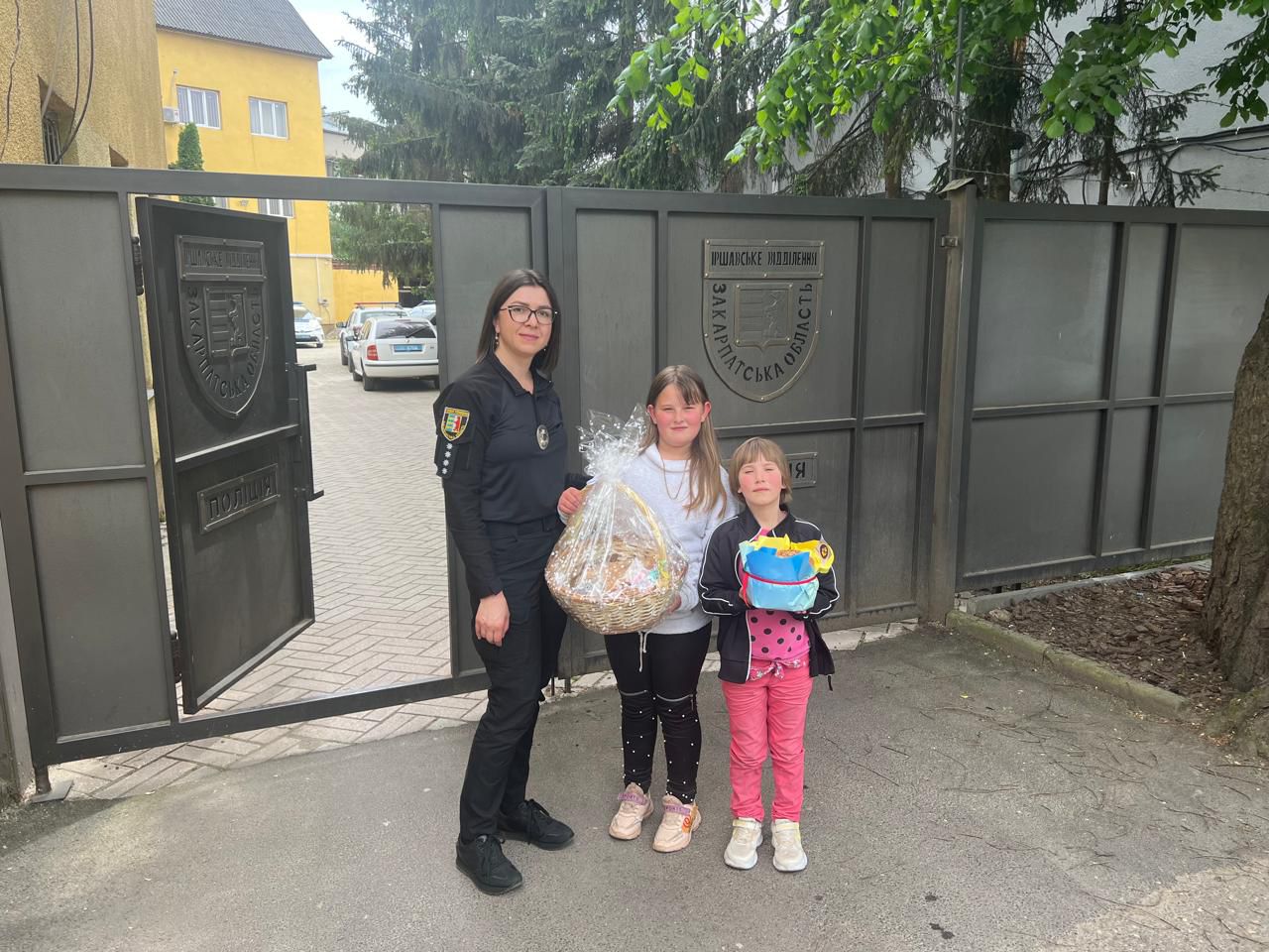На Закарпатті ювенальні поліцейські привітали діток, якими опікуються, з прийдешнім Великоднем