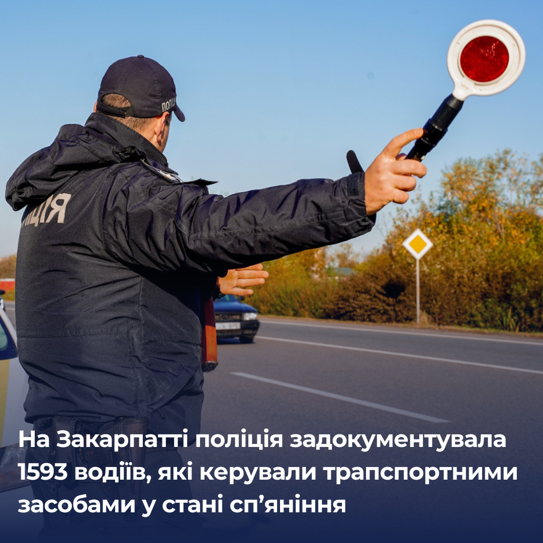 З початку року в Закарпатській області співробітники груп реагування патрульної поліції зафіксували 1593 випадки, коли водії керували транспортними засобами у стані сп’яніння.