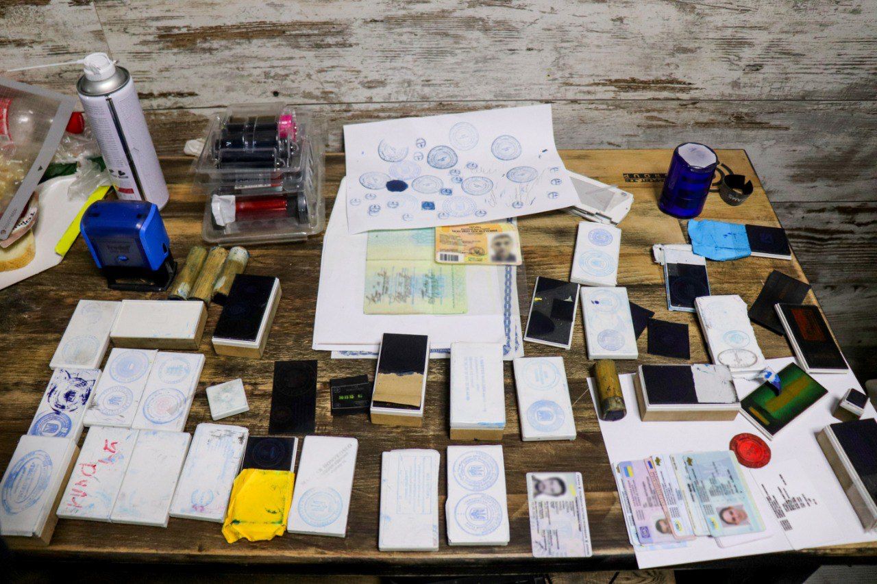 Серед вилученого: дороговартісний лазерний пристрій для друку документів, електронний зчитувач, 13 принтерів, системні блоки, пристрій для вирізання, пристрої та плівки для гравіювання, ламінування та голограм, а також близько 30 водійських посвідчень, дипломи, свідоцтва про реєстрацію, близько сотні бланків, відтиски печаток, пенсійне посвідчення з явними ознаками підробки.