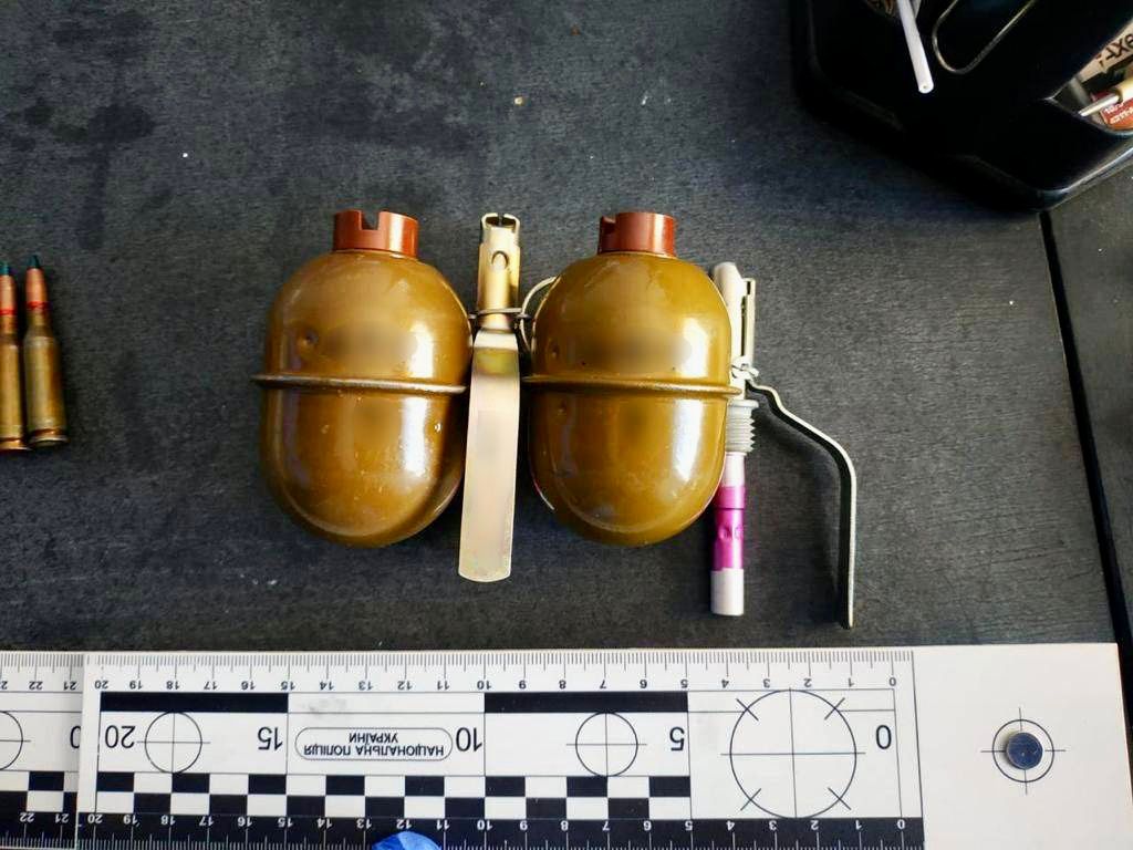З місця події слідчі вилучили всі речові докази, в тому числі дві гранати та запали до них, й десятки патронів. За місцем проживання поліцейські вилучили ще частину прихованих набоїв до автомата.