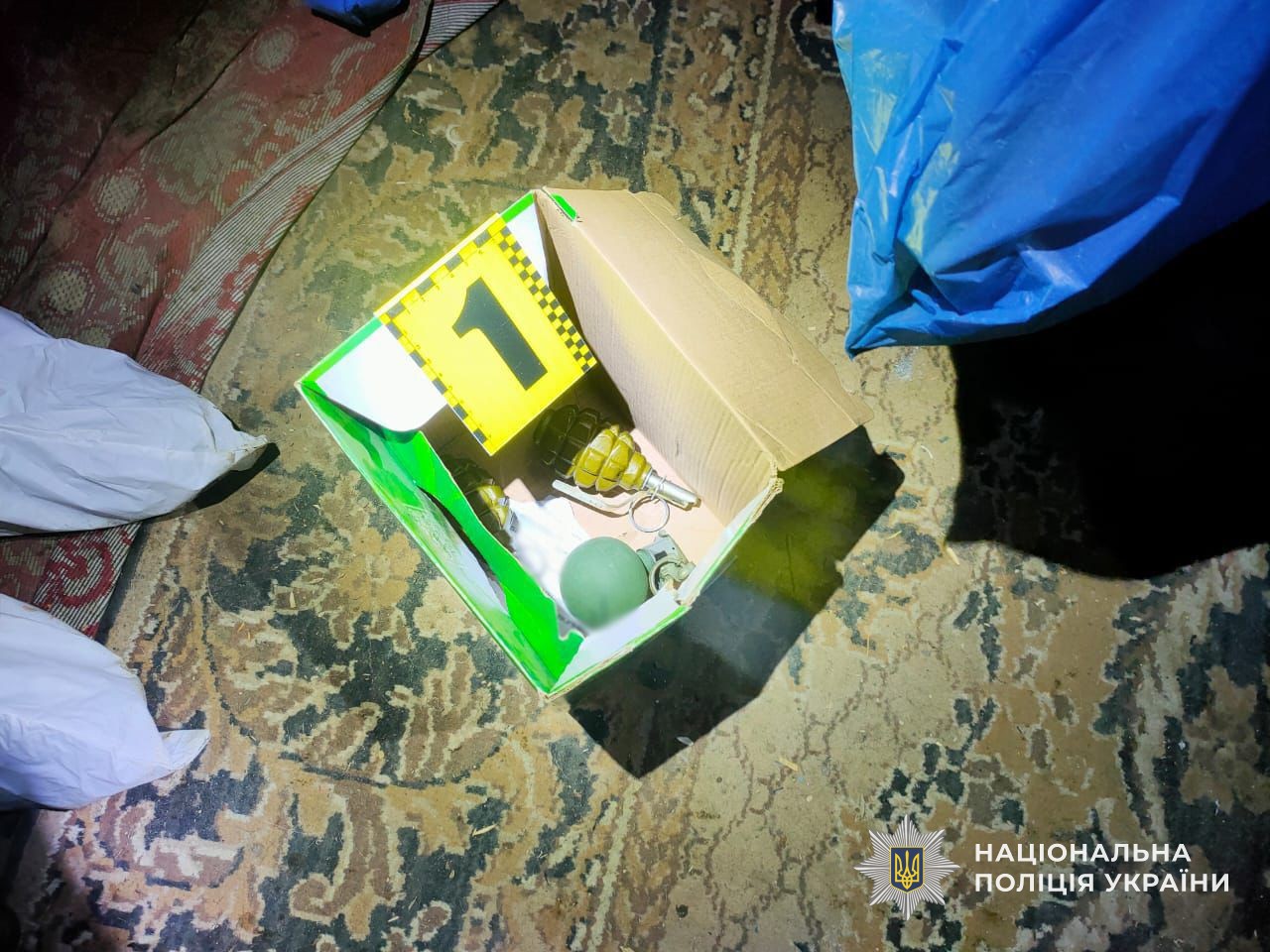 Під час проведення огляду місця події поліцейські виявили у помешканні прихованими ще три гранати. Їх вилучено.