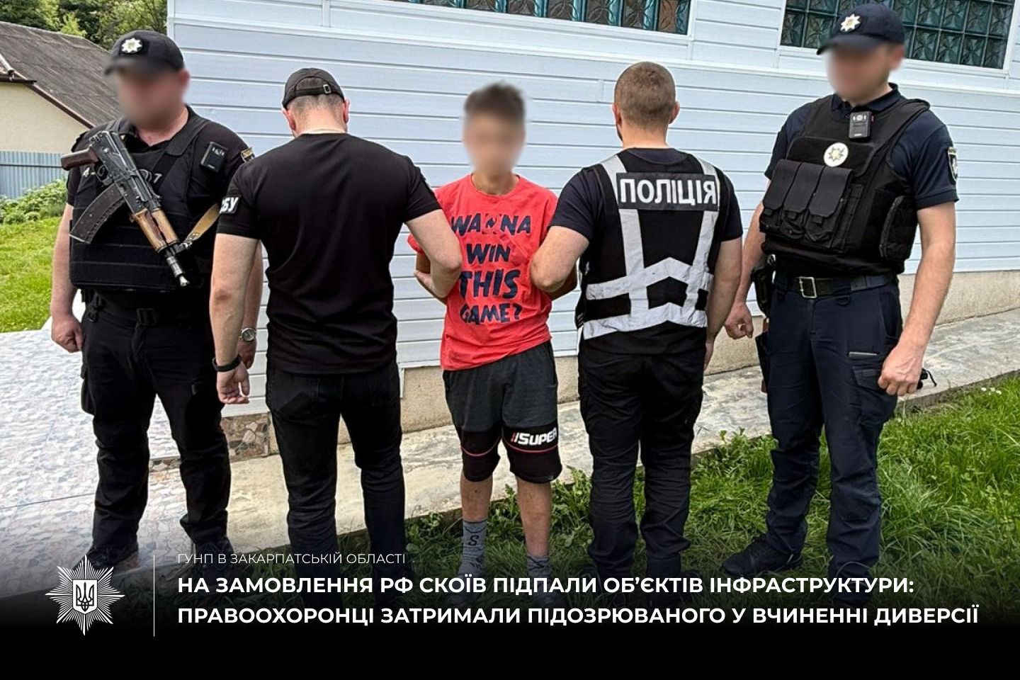 Співробітники Тячівського районного відділу поліції у співпраці з працівниками СБУ затримали 22-річного місцевого мешканця, який на замовлення російських спецслужб вчиняв підпали об’єктів інфраструктури.