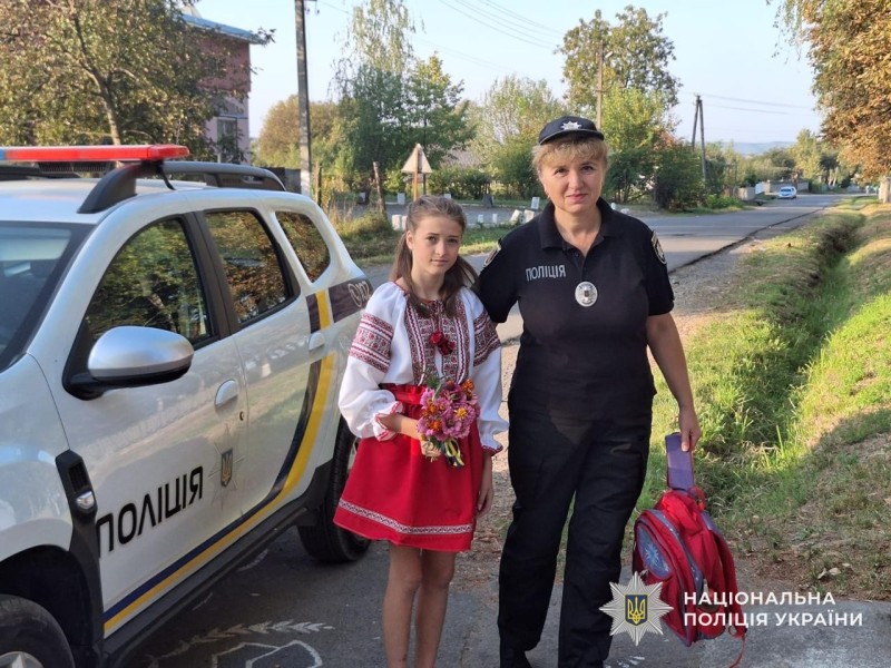 Напередодні свята Першого дзвоника поліцейська офіцерка Білківської громади Віта Горзов завітала до 12-річної дівчинки у селі Білки