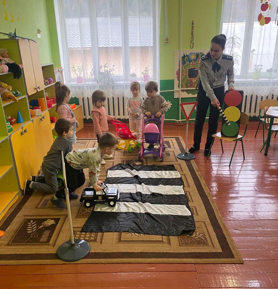 Інспектор-ювенал поліції Міжгір’я Юлія Воробок провела виховне заняття на тему дорожньої безпеки для діток, які виховуються в одному з місцевих садочків.