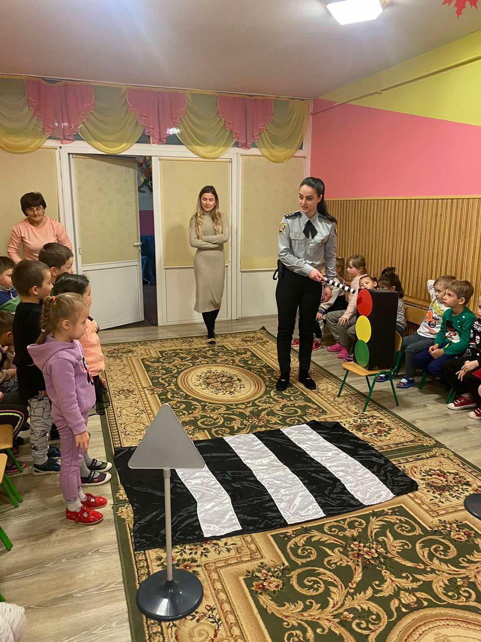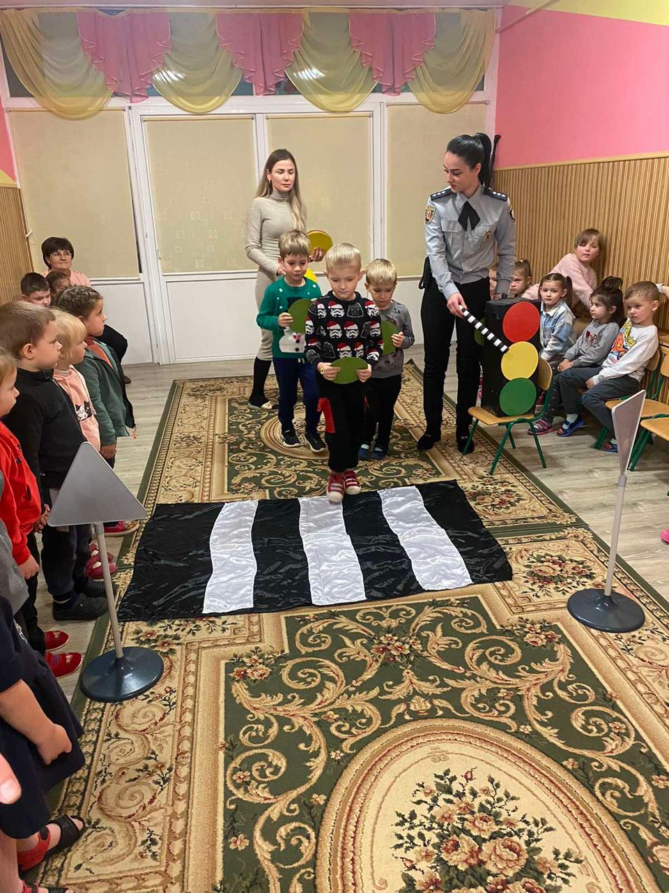 Разом із вихователями поліцейська розповіла вихованцям старших груп навчального закладу про основні дорожні знаки, світлофор та правила перетину пішохідного переходу.