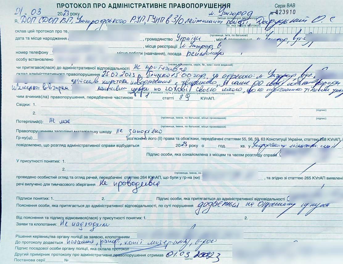 На пенсіонера складено адміністративний протокол за ч. 1 ст. 89 КУпАП, що передбачає штраф від двохсот до трьохсот неоподатковуваних мінімумів доходів громадян.