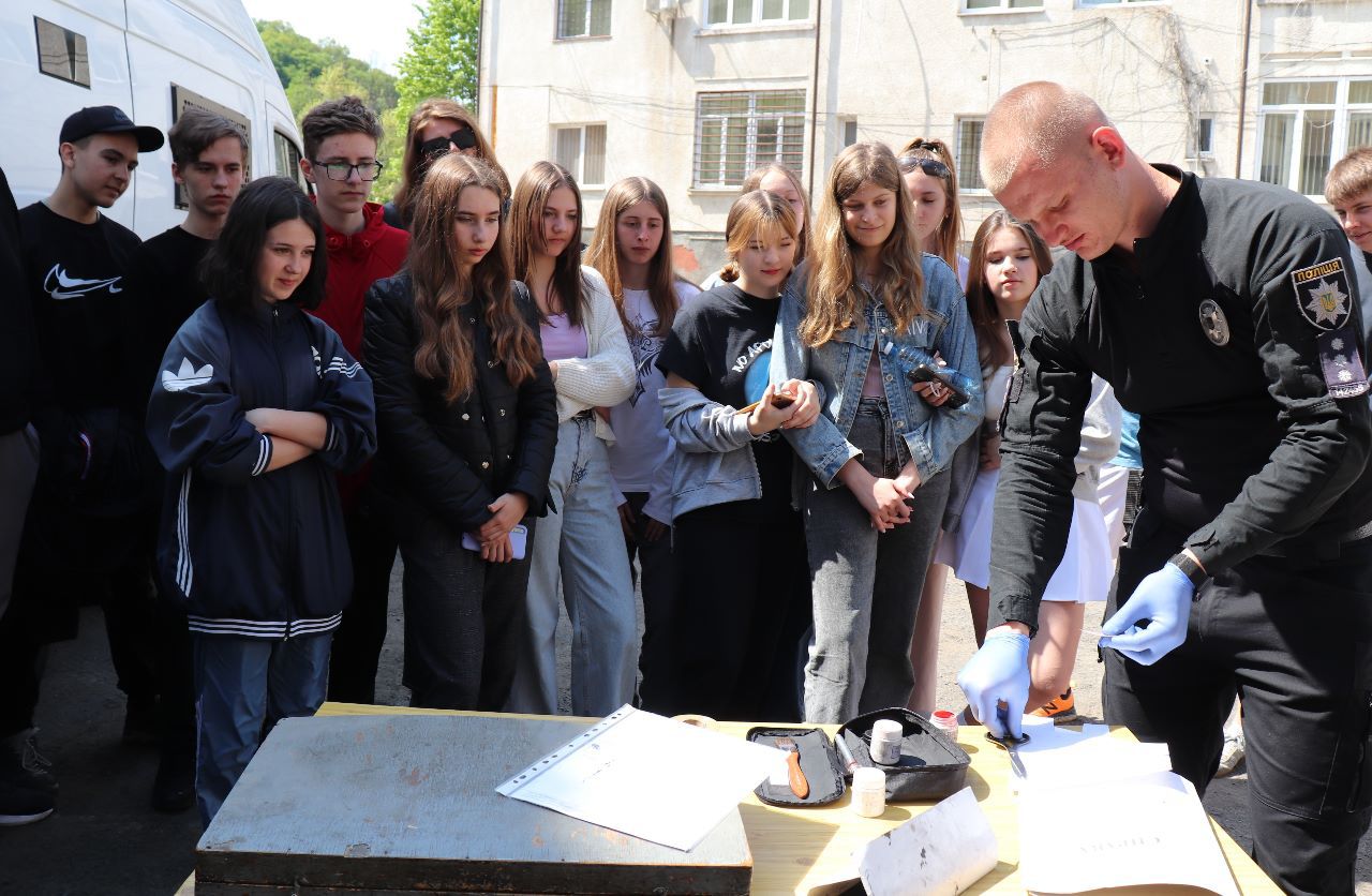 Після цього школярам продемонстрували роботу криміналістів. Дітям, які погодилися зняти відбитки пальців, подарували ескізи із ними напам’ять. Діти відзначили, що подібне бачили лише у кіно. Кілька учасників екскурсії розповіли, що надумали після завершення навчання у школі, спробувати вступити у навчальні заклади системи МВС.