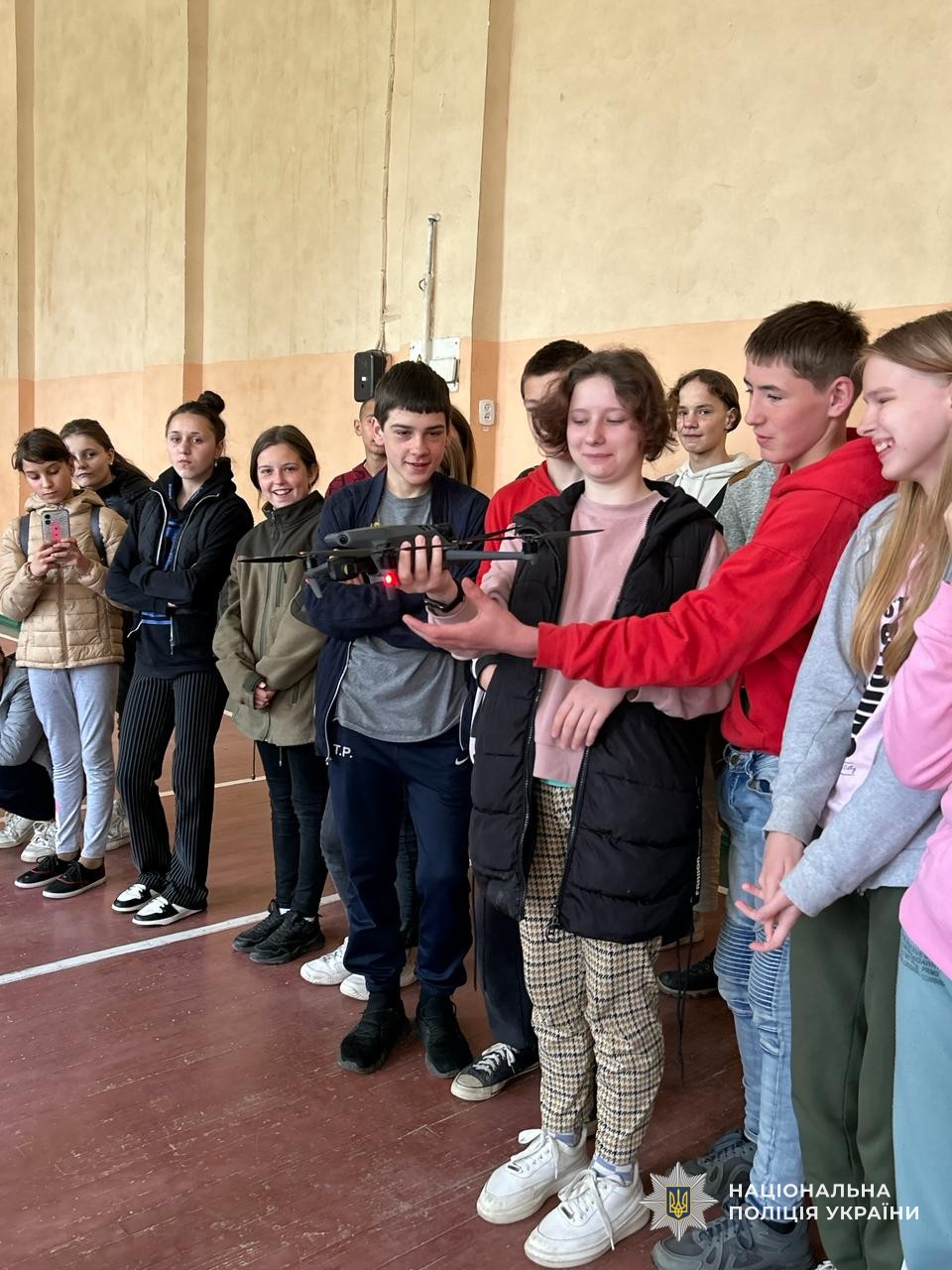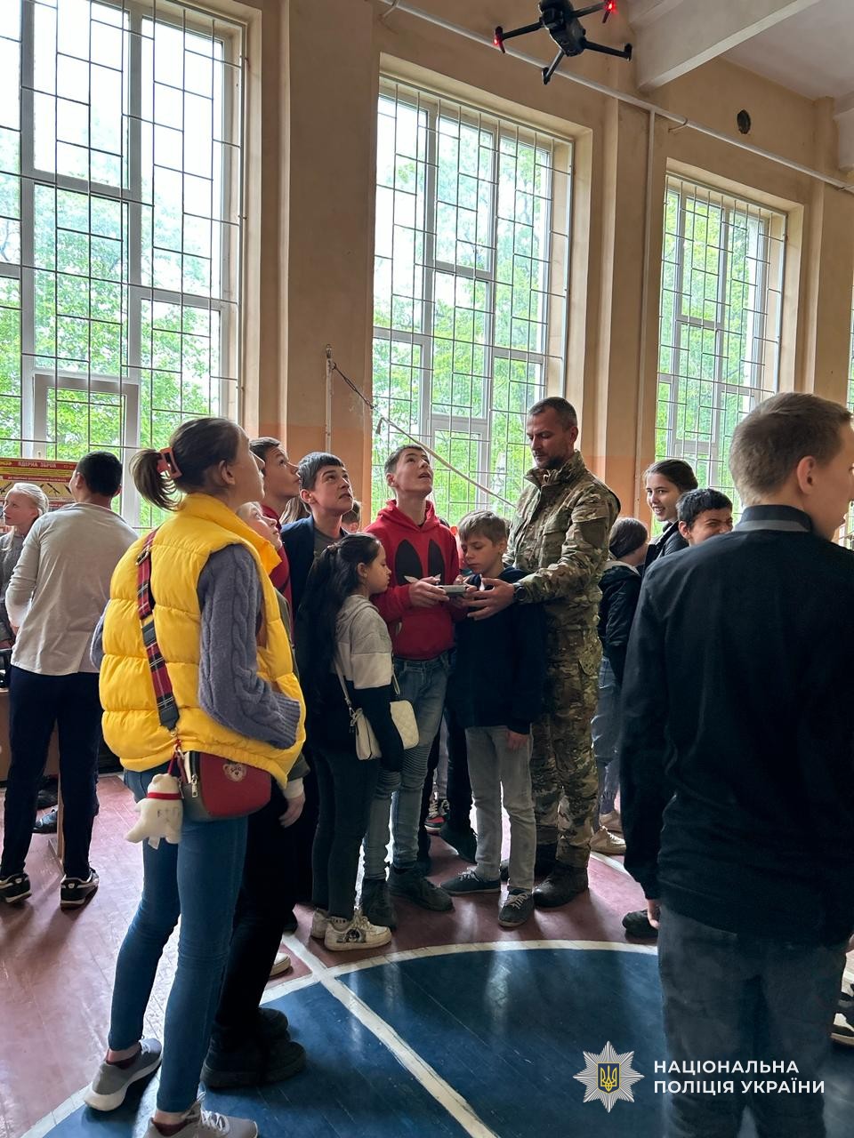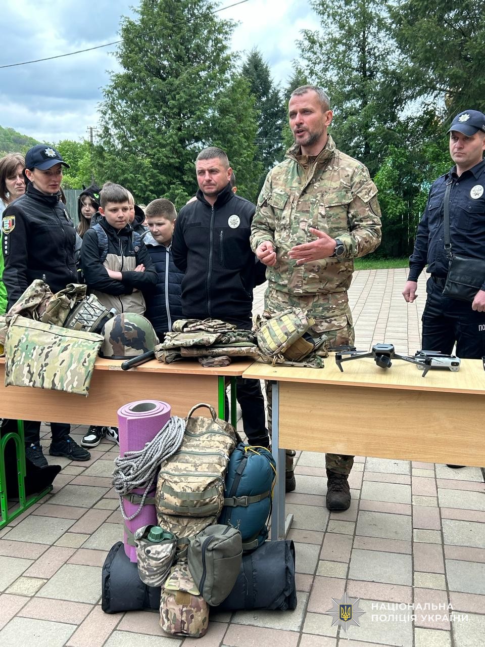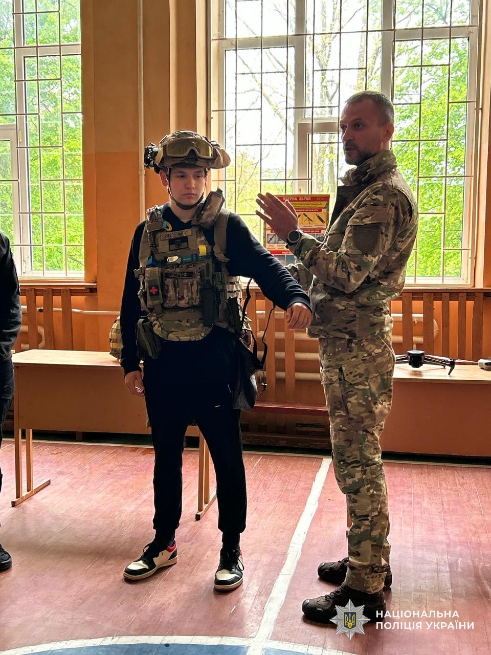 До заходу долучився й старший інспектор сектору ювенальної поліції Управління превентивної поліції Закарпаття Роман Король, який зробив урок ще цікавішим, адже приніс безпілотний літальний апарат. Правоохоронець розповів, як цей пристрій допомагав під час складних операцій під час перебування в зоні бойових дій та пояснив особливості керування ним.