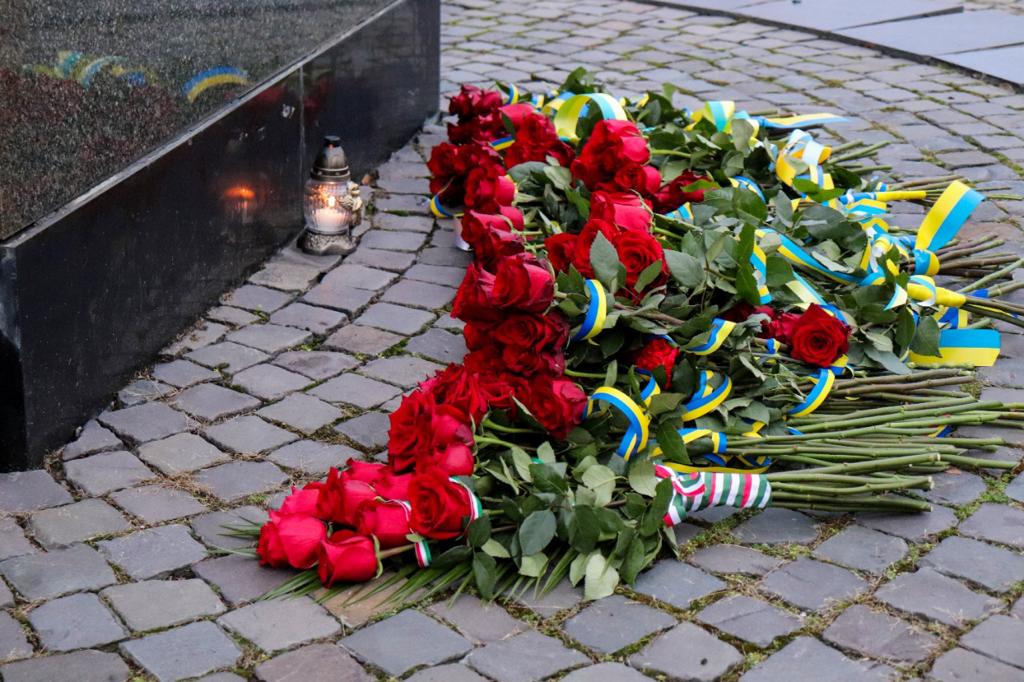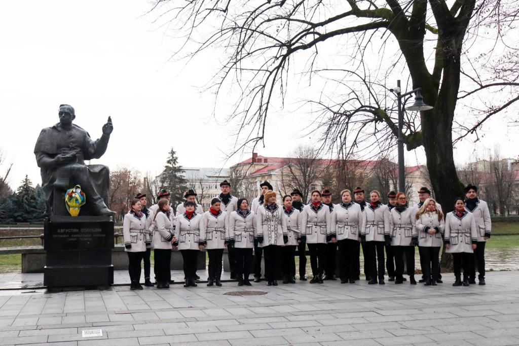 Під виконання патріотичних композицій Заслуженим академічним Закарпатським народним хором присутні піднесли квіти до пам’ятника Тарасові Шевченку та Августину Волошину.