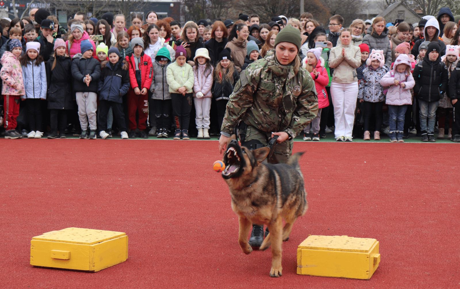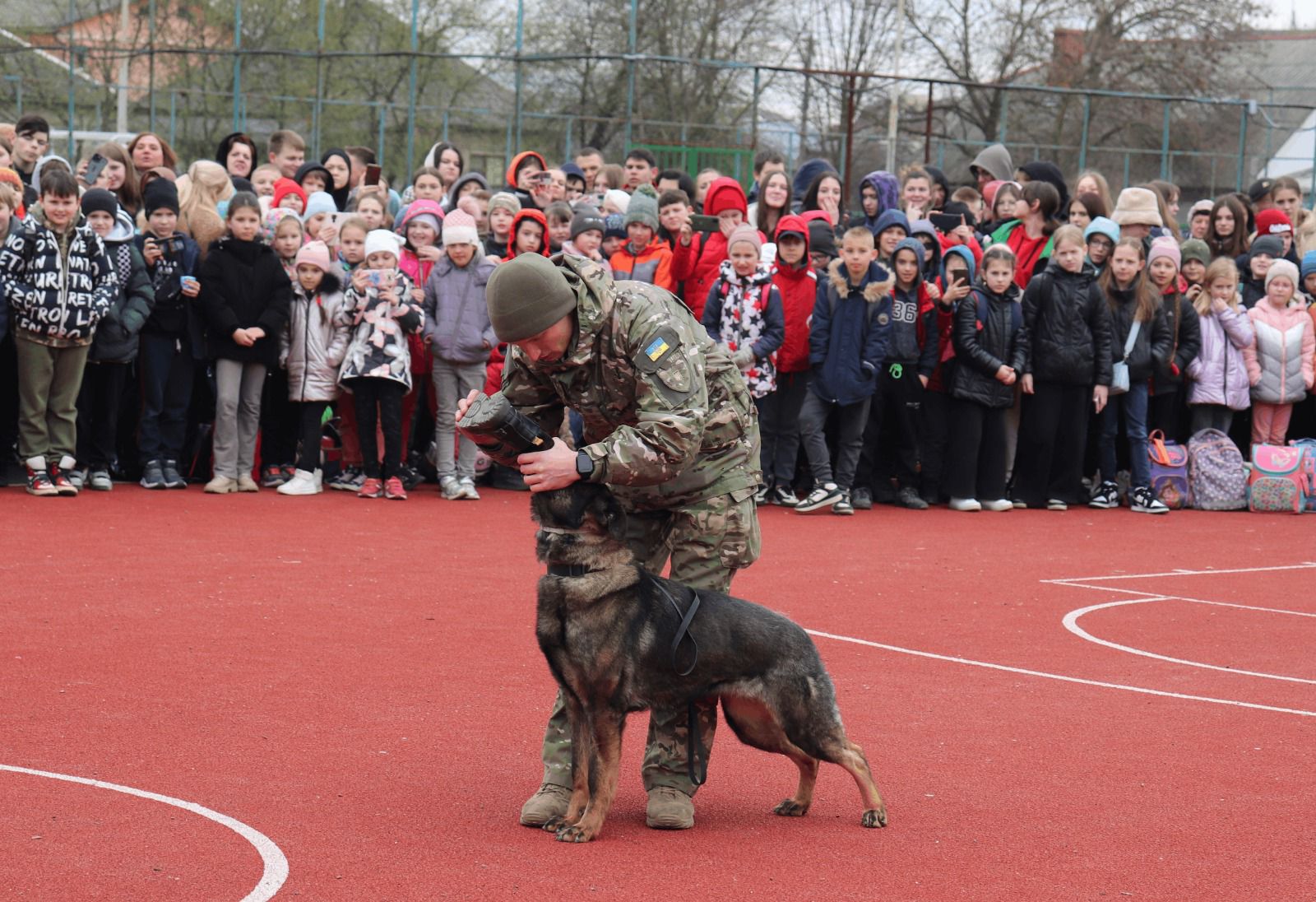 Поліцейські кінологи показали, які команди вміють виконувати їх чотирилапі помічники. Показали, як службові собаки шукають заборонені предмети та сховані речі.