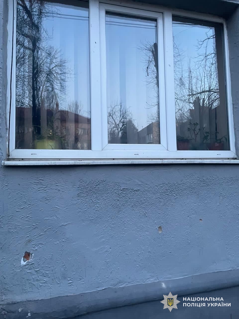 На місце негайно прибули співробітники поліції. Під час огляду було виявлено пошкодження на вікнах та фасаді багатоквартирного будинку.