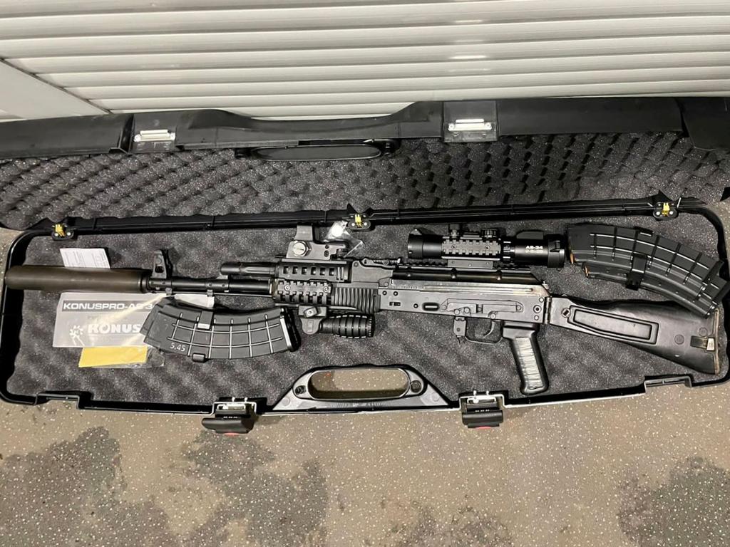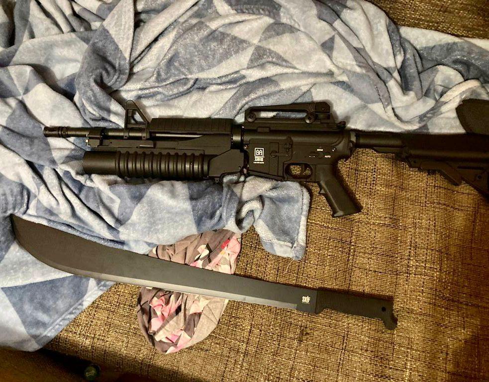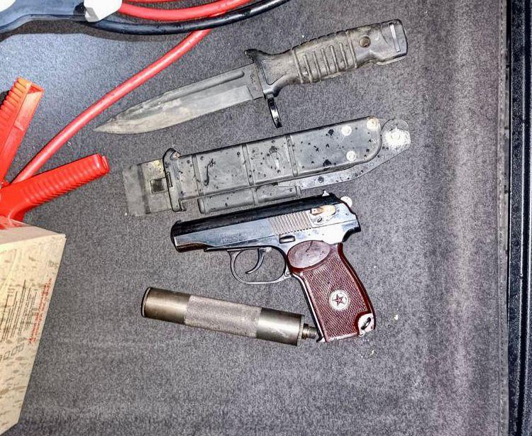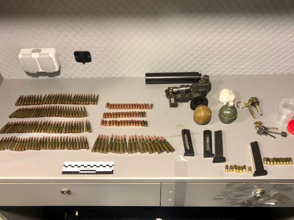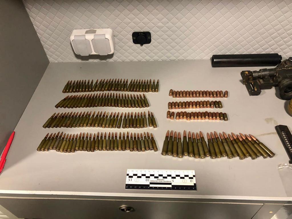 У результаті, в одному з авто було виявлено цілий арсенал бойової зброї. А саме: автомат Калашникова з глушником, кулемет, понад 200 набоїв різного калібру, гранати, запали до них та магазини до пістолета; в іншому автомобілі — пістолет ПМ та штик-ніж; в будинку підозрюваного поліцейські виявили гвинтівку з підствольним гранатометом, клинок, мачете, приціл до ручного протитанкового гранатомета та глушник.