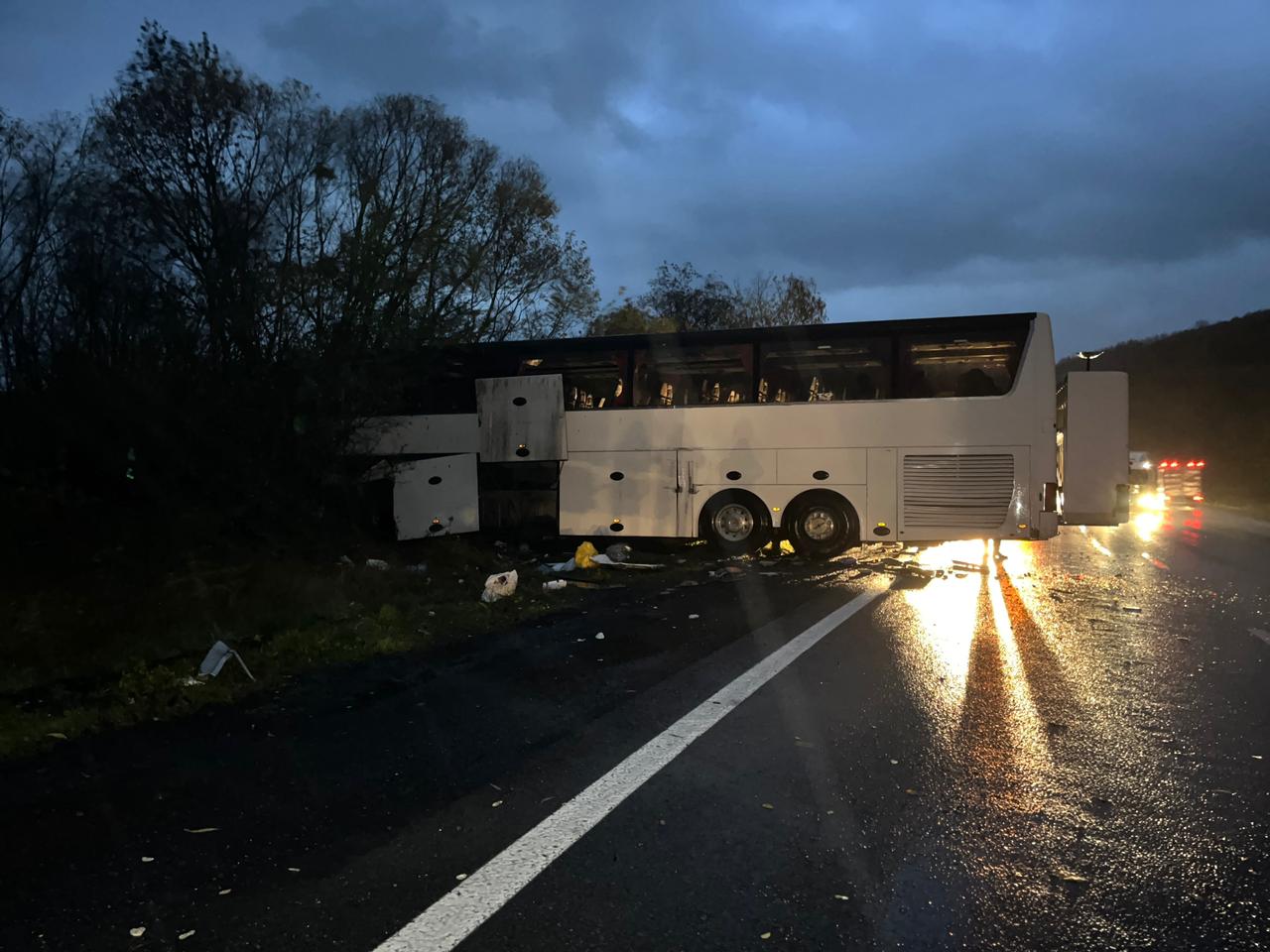 Встановлено, що близько 15-ї години водій вантажівки «MAN», 33-річний житель міста Калуш Івано-Франківської області, рухаючись по автодорозі М-06 у напрямку села Нижні Ворота, не впорався з керуванням на спуску та зіткнувся з пасажирським автобусом марки «VAN HOOL», який здійснював міжнародні перевезення.
