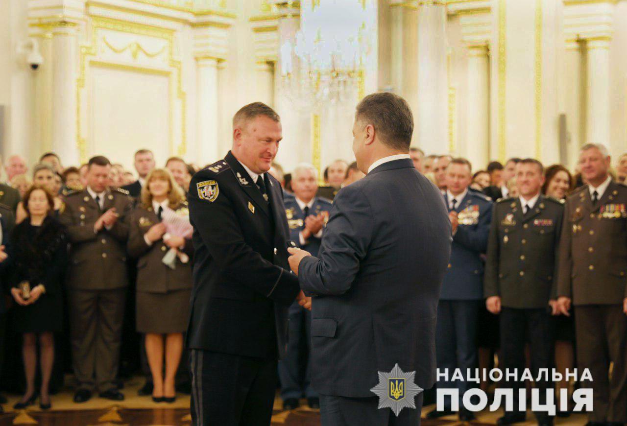 З нагоди Дня захисника України Президент України Петро Порошенко відзначив керівника Національної поліції Сергія Князєва спеціальними званнями. Церемонія вручення відбулася у Маріїнському палаці у Києві.