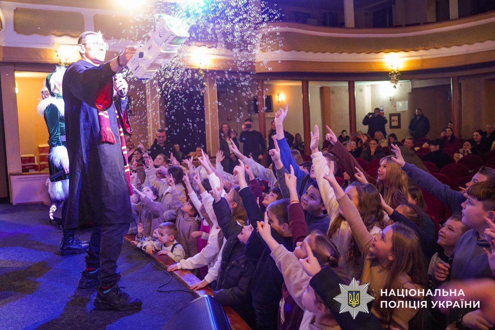 Члени Первинної профспілкової організації ГУНП в Закарпатській області спільно з працівниками Управління кадрового забезпечення організували святковий різдвяно-новорічний захід для дітей із родин поліцейських, зокрема учасників бойових дій та внутрішньо переміщених сімей. Подія відбулася у приміщенні Закарпатського академічного обласного театру ляльок «БАВКА».