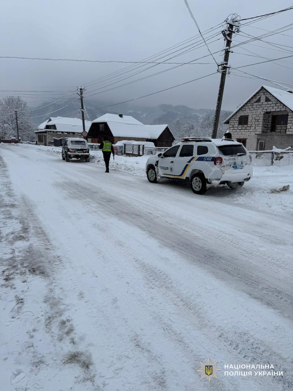 Снігопади та ожеледиця на Закарпатті: поліція продовжує допомагати громадянам у складних умовах