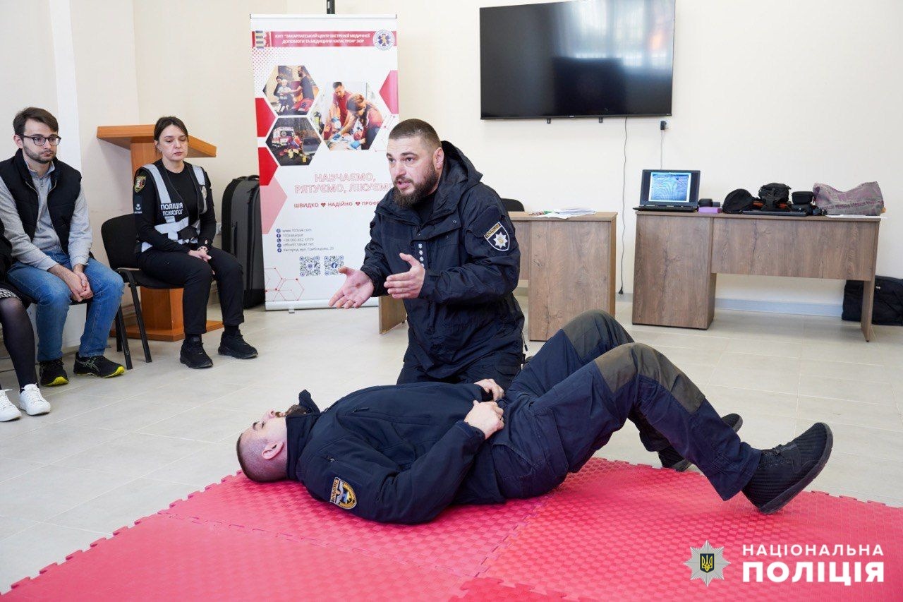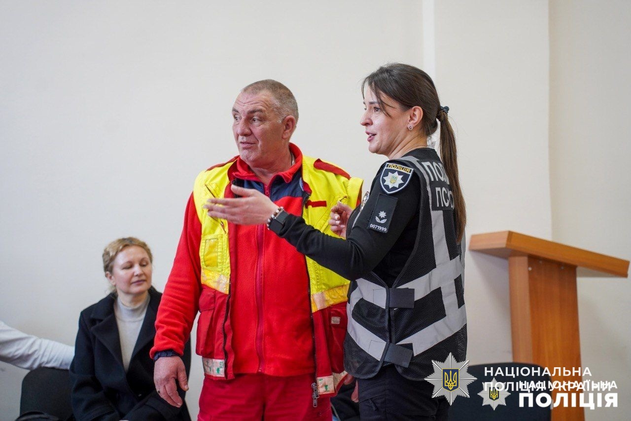 Спецпризначенці показали медикам базові прийоми самооборони, зокрема — захист від ударів та звільнення від різноманітних захоплень. Також поліцейські змоделювали конфліктні ситуації у приміщеннях з обмеженим простором та в кареті швидкої допомоги і роз’яснили медикам, як діяти за таких умов, щоб убезпечити себе.