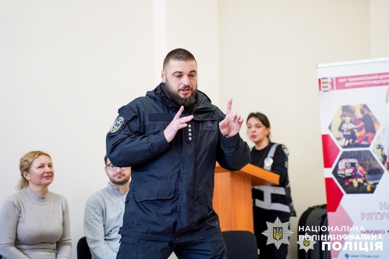 Спецпризначенці Роти поліції особливого призначення разом зі співробітницею сектору психологічного забезпечення Головного управління Національної поліції в Закарпатській області роз’яснили медпрацівникам, як виявляти потенційну загрозу, як діяти у конфліктних ситуаціях та як їм запобігти. Такий захід, за участі бійців спецпідрозділу поліції, на Закарпатті проходив уперше.