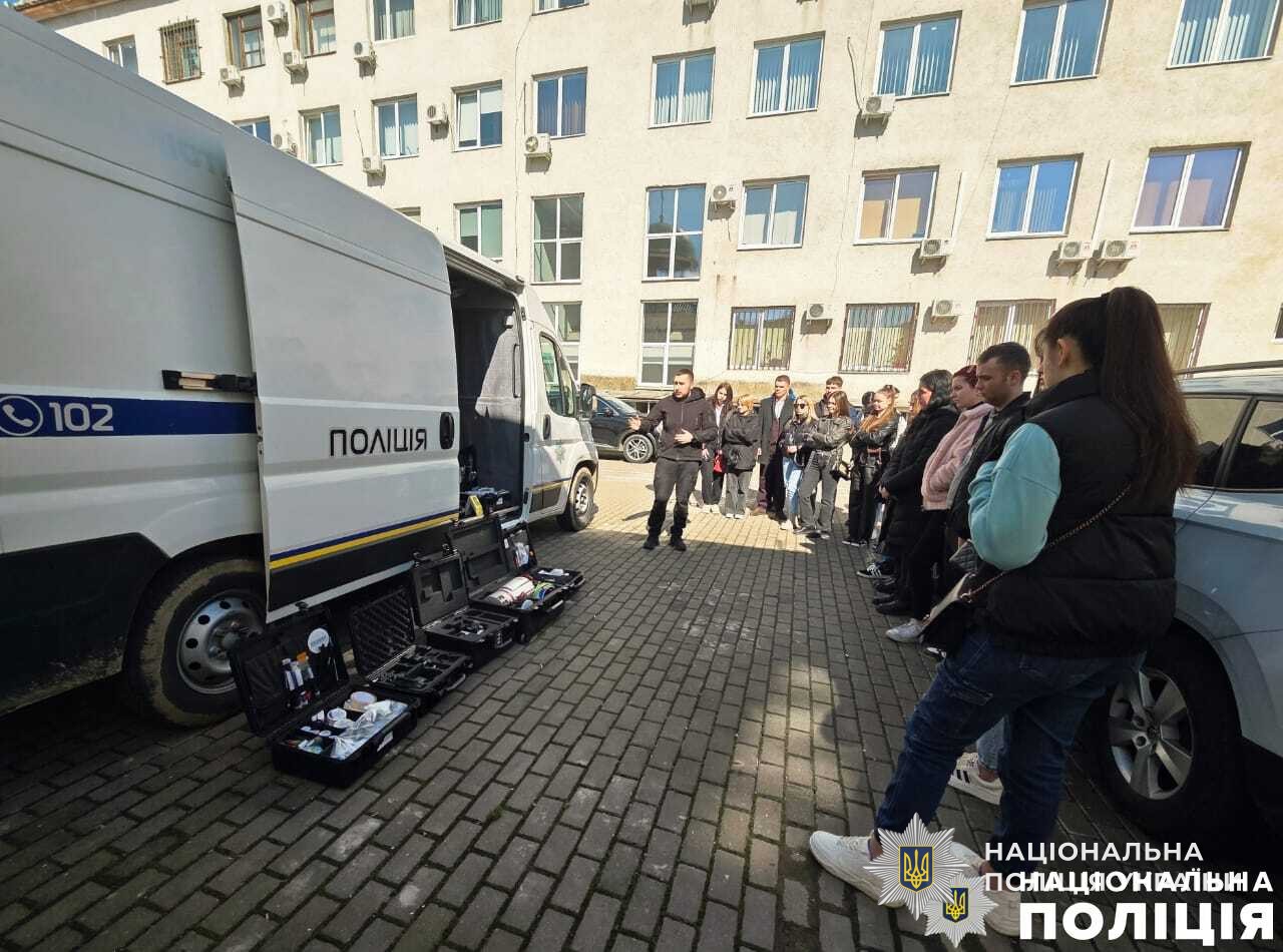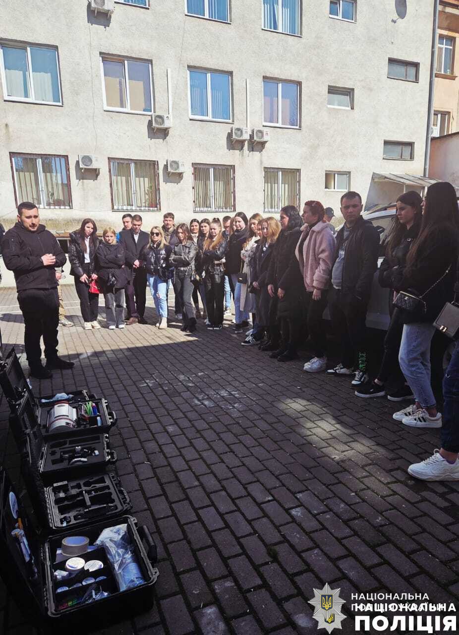 Наприкінці екскурсії здобувачі освіти зустрілись із спеціалістами-криміналістами, які продемонстрували криміналістичну лабораторію та послухали лекцію щодо особливостей роботи слідчих підрозділів поліції від заступника начальника Слідчого управління ГУНП в Закарпатській області.