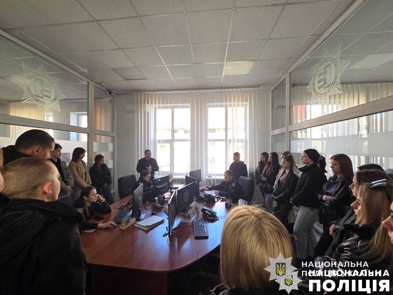 Окремо гості завітали до службового приміщення диспетчерів «102», де мали нагоду на власні очі побачити, як приймаються екстрені виклики та реєструються повідомлення про правопорушення й інші події, що надходять телефоном.