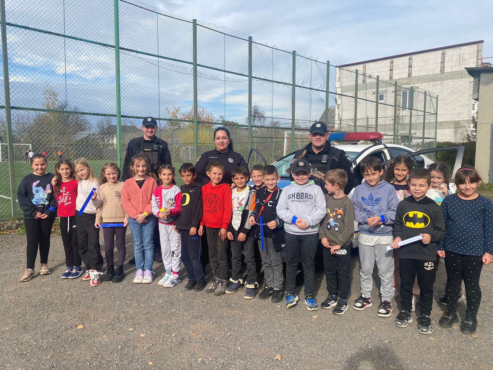Учням 1-4 класів поліцейські у ігровій формі розповіли, що таке пішохідний перехід, які дорожні знаки діють в Україні та пояснили, що у вечірню пору восени та взимку краще не гуляти вулицями населених пунктів без супроводу батьків.