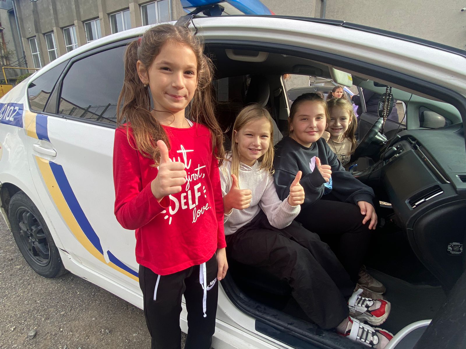 До того ж, ювенальні інспектори спільно з працівниками сектору реагування патрульної поліції повідомили діток, що у будь-якому випадку, на їх одязі мають бути світлоповертальні елементи. Щоб порадувати малечу, правоохоронці запросили діток на собі відчути як це – бути поліцейським. Дітки залюбки приміряли поліцейську кепку та посиділи у службовому авто правоохоронців.