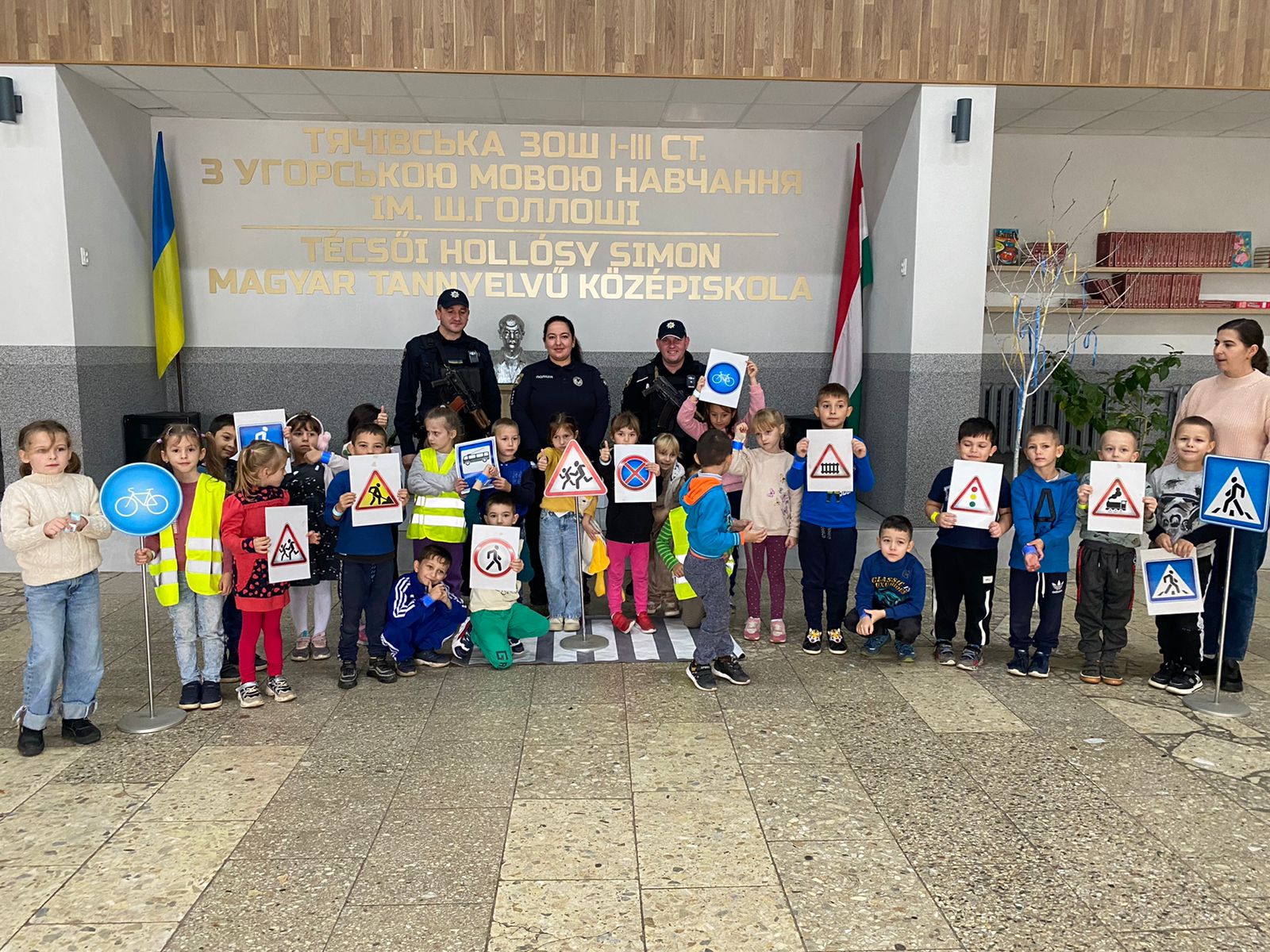 До учнів початкових класів Тячівської ЗОШ І-ІІІ ступенів імені Ш. Голлоші у гості завітали співробітники Тячівського районного відділу поліції. Для малят поліцейські провели урок з дорожньої грамоти та подарували діткам світлоповертальні стрічки, які допоможуть їм бути помітними у темряві