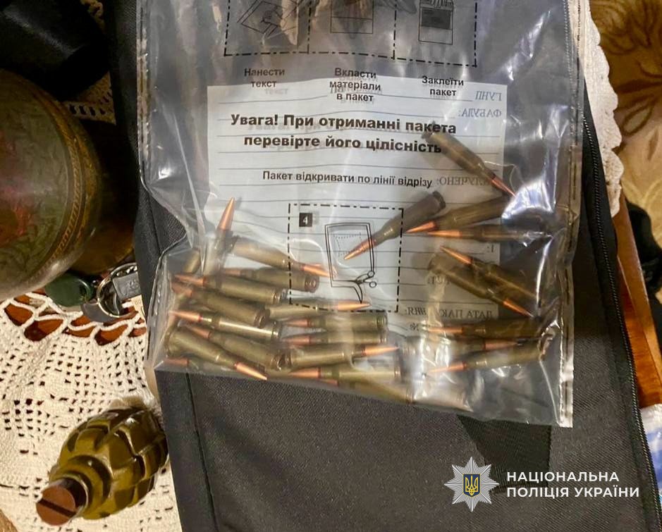 Окрім гранати Ф-1, якою фігурант погрожував потерпілій, слідчі вилучили у нього більше трьох десятків патронів.