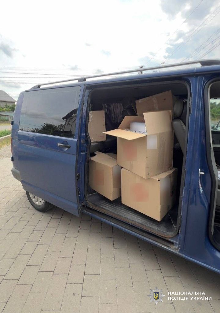 Під час огляду автомобіля поліцейські виявили 5 картонних коробок, всередині яких знаходилися 2 500 пачок тютюнових виробів без акцизних марок.