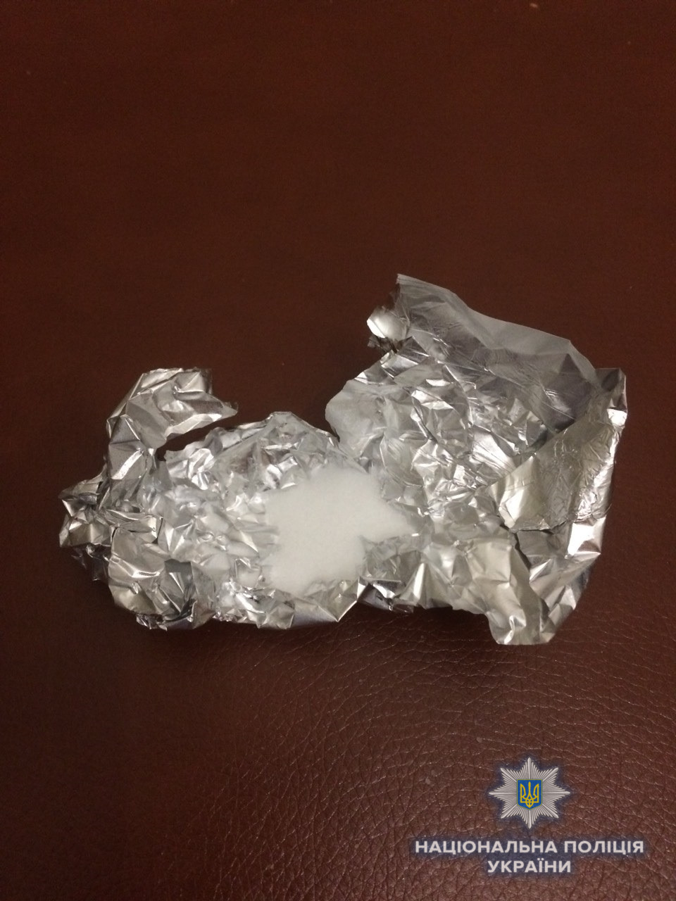 В подальшому під час поверхневої перевірки працівники поліції виявили та вилучили в жінки згорток фольги з речовиною, схожою на метамфетамін.