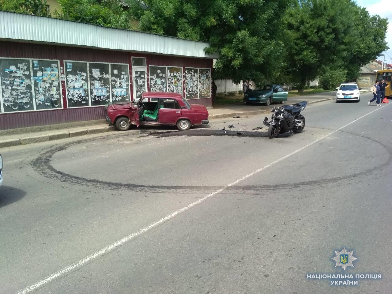 У результаті отриманих при зіткненні з легковиком травм, водія мотоцикла госпіталізували до лікарні. Наразі поліція встановлює обставини аварії.