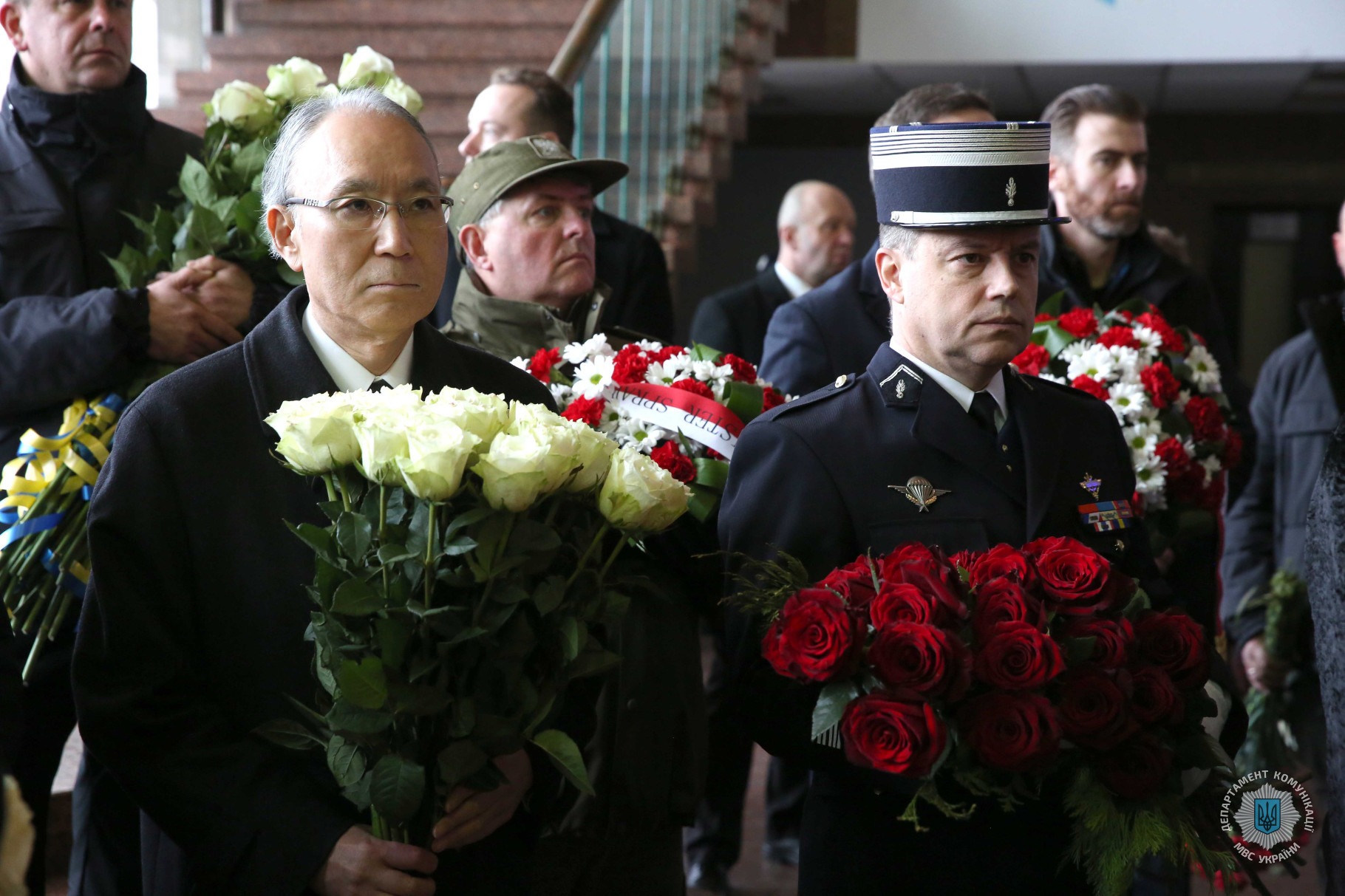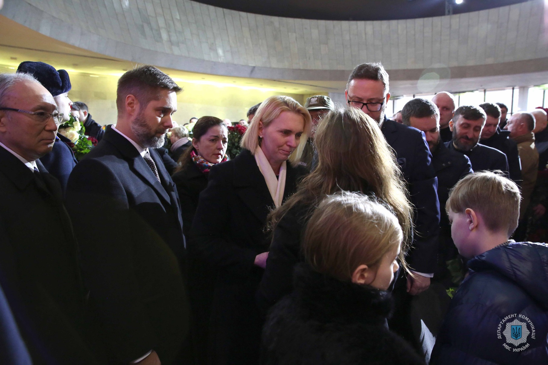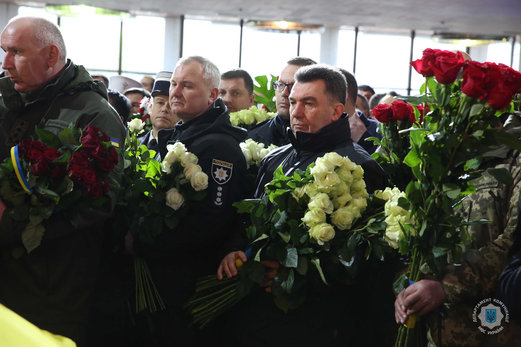 Попрощатися і віддати шану людям, які до останнього свого подиху виконували професійний обов’язок з організації у державі під час масштабної війни з російським агресором ефективної системи забезпечення усебічної безпеки українських громадян, були втіленням сучасного і прогресивного погляду на розбудову складових МВС, цього дня прийшли керівники Української держави, центральних органів виконавчої влади, представники депутатського корпусу, колеги з силового і безпекового сектору, міжнародні партнери й дипломати, українські політики, діячі культури та митці.