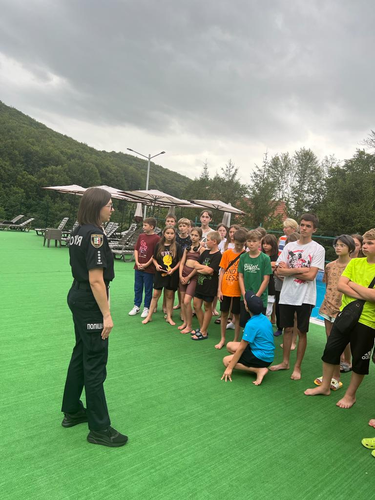 Цього разу поліцейська Яна Горзов разом з дільничним офіцером поліції навідалися до оздоровчого табору «Зачарована долина», що розташований у мальовничому урочищі Кам’янка у селі Осій. На літні канікули з різних куточків області туди прибули 118 діток, віком від 6 до 18 років. Для них поліцейські провели пізнавальний урок на свіжому повітрі про правила безпеки.