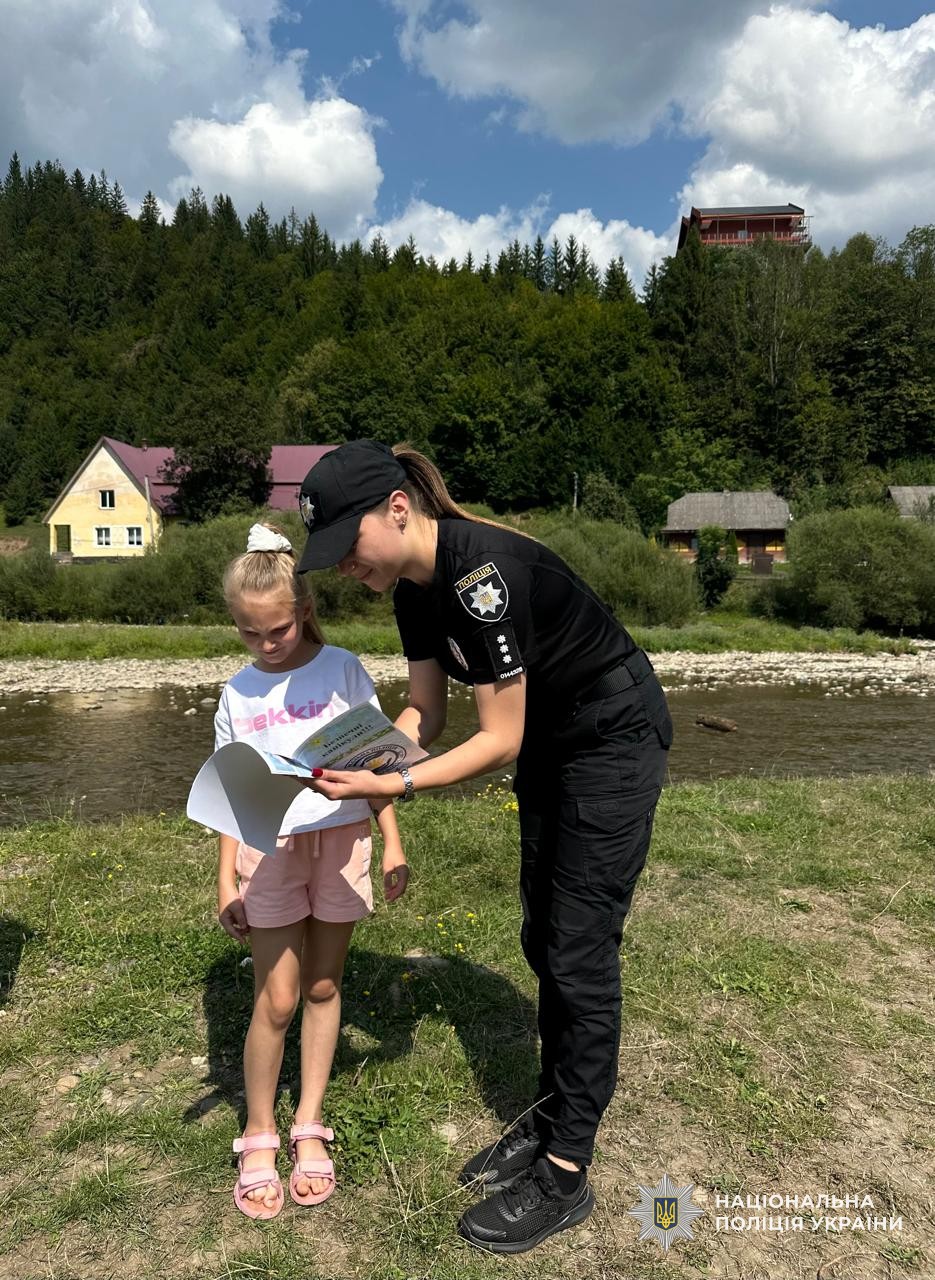 Зустріч відбулася поблизу місцевої водойми, де в літній період часто відпочивають діти. Ювенальна поліцейська Міжгір'я наголосила на важливості дотримання правил поведінки під час купання, звернула увагу на категоричну заборону самостійного відвідування водойм без нагляду дорослих та розповіла про основні ризики, пов’язані з відпочинком на воді.