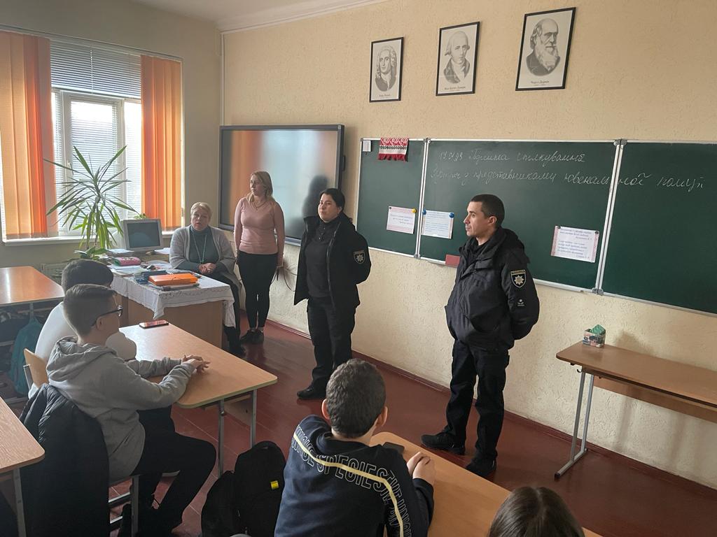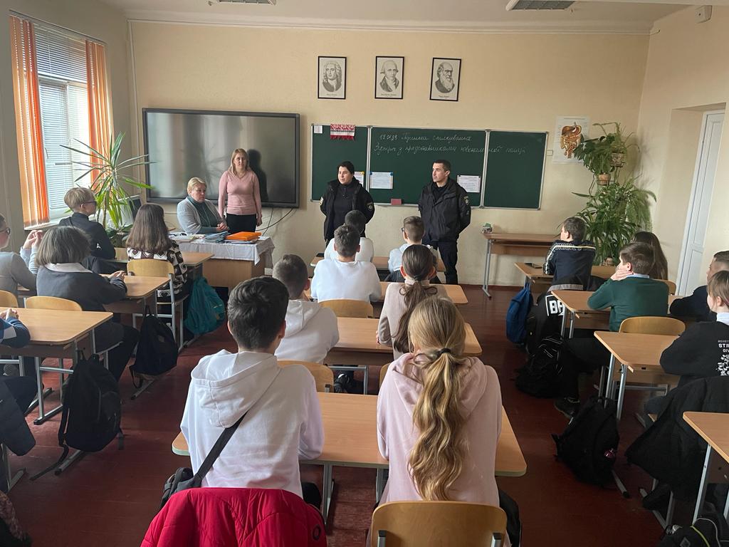 Інспектори сектору ювенальної поліції зустрілися зі школярами кількох навчальних закладів району. Під час виховних занять поліцейські спілкувалися з учнями про їх безпеку на дорозі, протидію булінгу та здоровий спосіб життя