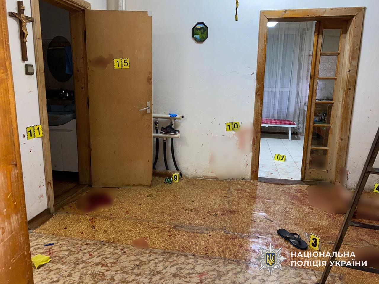 Тоді до поліції зателефонував мешканець Мукачева та повідомив, що у будинку матері він виявив посеред кімнати тіло чоловіка у крові.