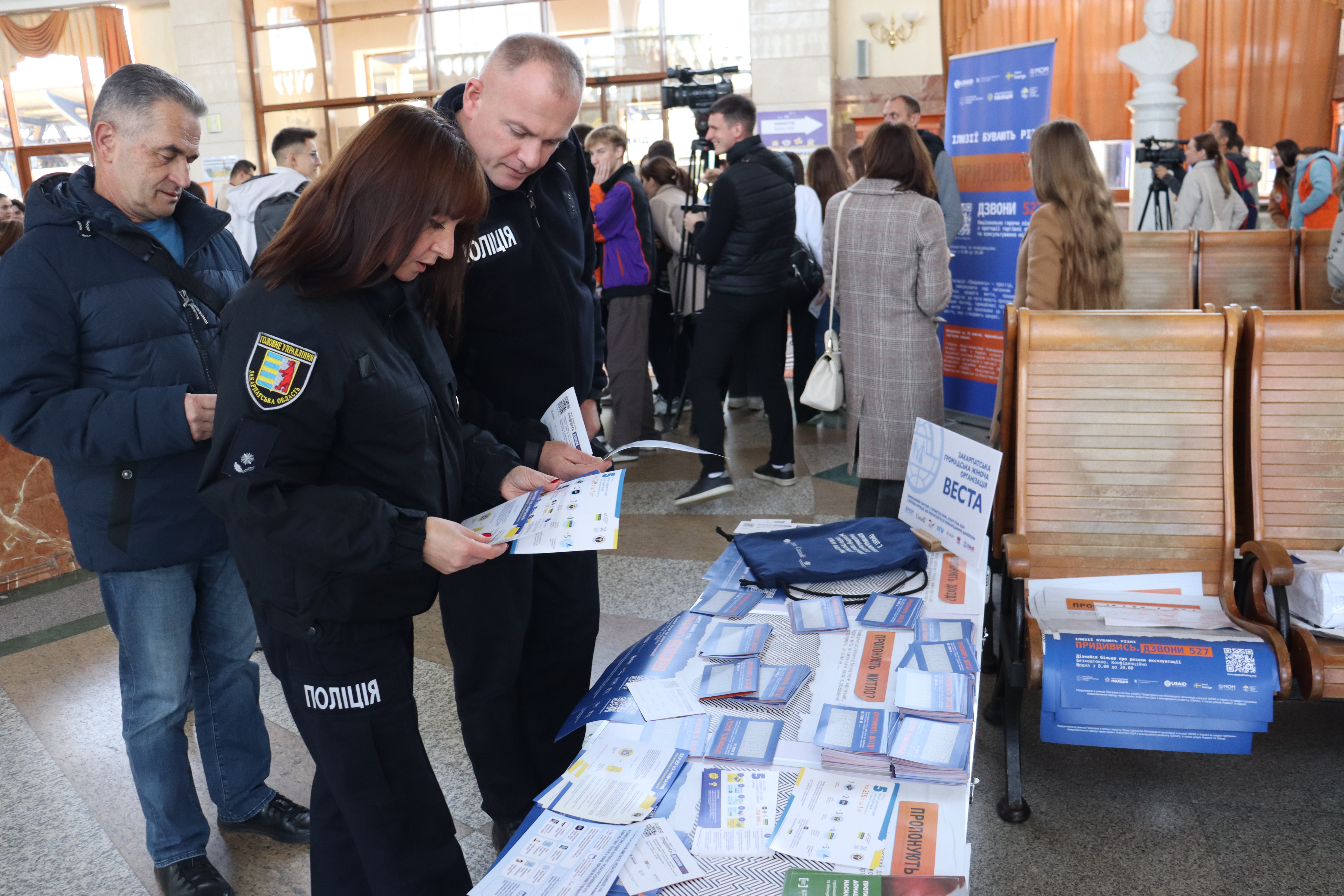 18 жовтня з нагоди Європейського дня боротьби з торгівлею людьми на Ужгородському залізничному вокзалі пройшли заходи у підтримку концепції інформаційної експозиції «Придивись». До події долучились співробітники відділу міграційної поліції Головного управління Національної поліції в Закарпатській області, співробітники Управління превентивної діяльності, а також інші представники влади та фахівці у сфері правової безпеки.