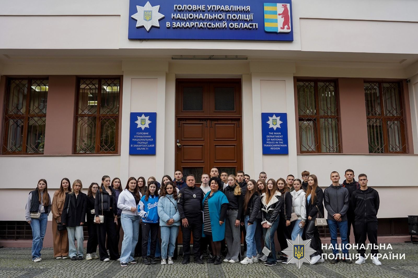 Екскурсія розпочалася в залі ГУНП в Закарпатській області — саме там студенти мали можливість поспілкуватися із керівниками таких структурних підрозділів як управління головної інспекції та відділу кримінального аналізу. Правоохоронці розповіли слухачам про діяльність працівників поліції в загальному, конкурсному відборі на посади та про особливості своїх напрямків роботи. Майбутні правоохоронці задавали питання спікерам й отримували змістовні відповіді.